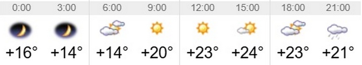 Швидкість вітру – 2-3 м/с. Вологість повітря коливатиметься між 43 та 79 відсотками протягом доби. Тривалість дня 27 червня – 16 годин 21 хвилина. Завтра за тривалістю день буде таким як і сьогодні. Світанок настане о 4:46, а захід – о 21:07.