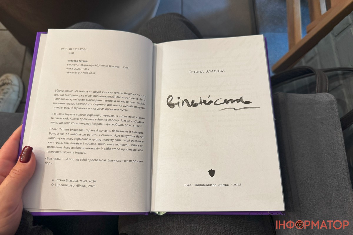 Тетяна Власова вже не вперше приїздить до Переяслава. У 2023 році відвідала місцевий університет, де провела зустріч зі студентами завдяки проєкту “Відкритий університет”. Зараз у неї триває тур по 25 містах України з презентацією нової збірки віршів “Вільність”, яка налічує понад 70 поезій. Вона вийшла друком у 2025 році накладом 2 тисячі примірників. Це друга книжка письменниці та перша, що вийшла уже після початку повномасштабного вторгнення. Власне, цього дня й поговорили про цю книгу.