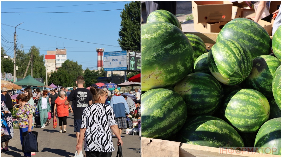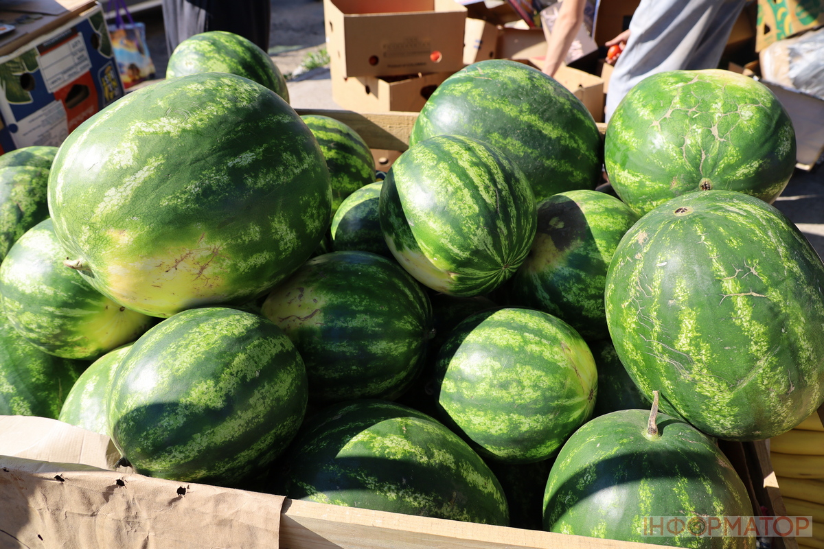 Цього тижня з’явились довгоочікувані кавуни – великі, смугасті, із Одещини. Продавці запевняють, що вони солодкі, стиглі й без “хімії”. Ціна – 28 гривень за кілограм. Покупці охоче розрізають перші кавуни просто на місці, щоб перевірити м’якоть.