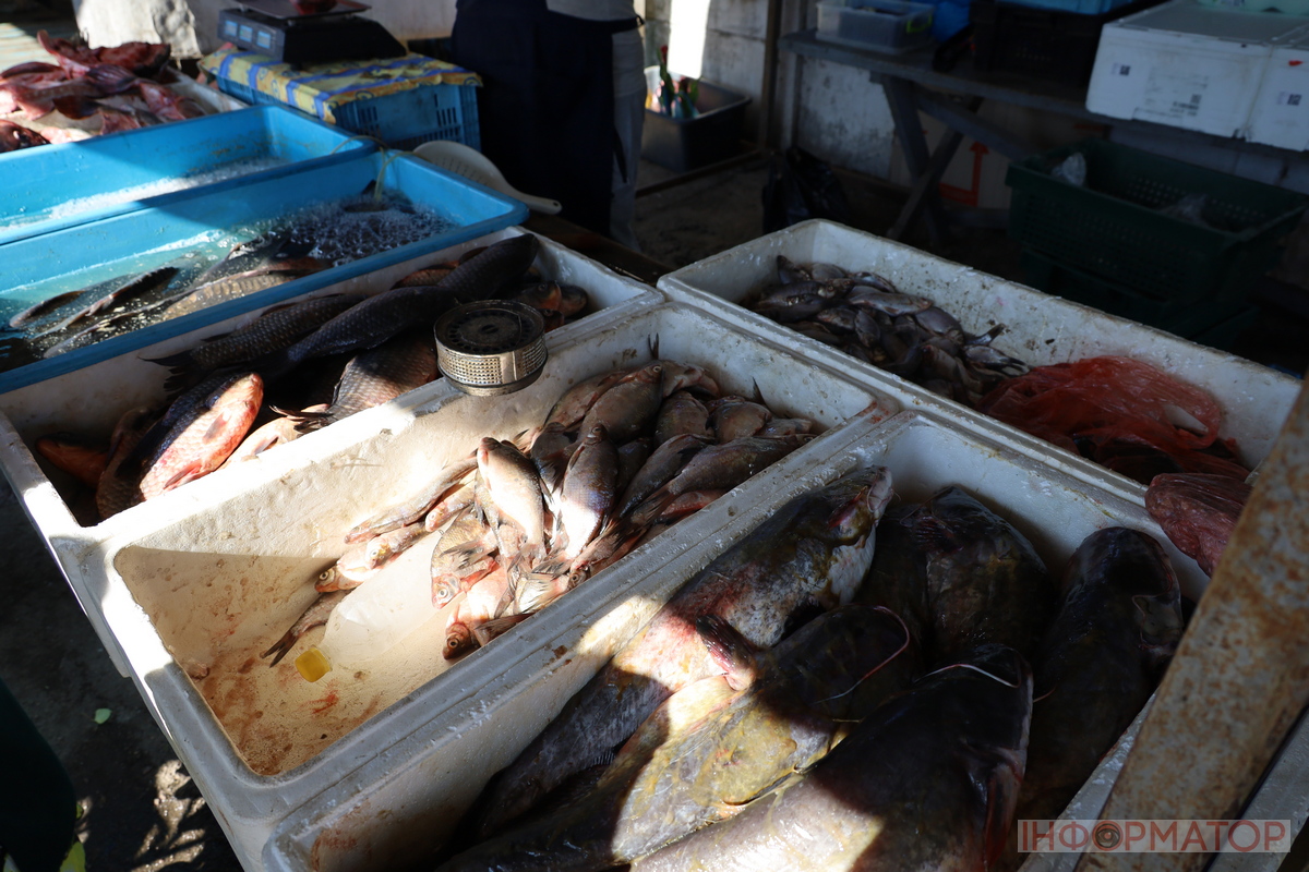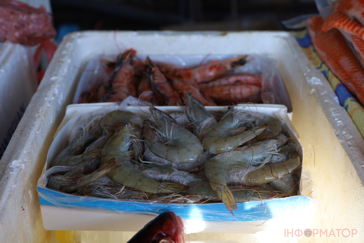Рибні прилавки, як завжди, були заповнені різноманітною продукцією – від свіжої риби до копченостей та морепродуктів. Покупці зупинялися, роздивлялися, радилися між собою, що краще взяти до обіду чи на вечерю. Цього дня особливою популярністю користувався судак – охайно викладений на лід, свіжий і з блискучою лускою. Його пропонували по 180-220 гривень за кілограм. На інше ціни такі: