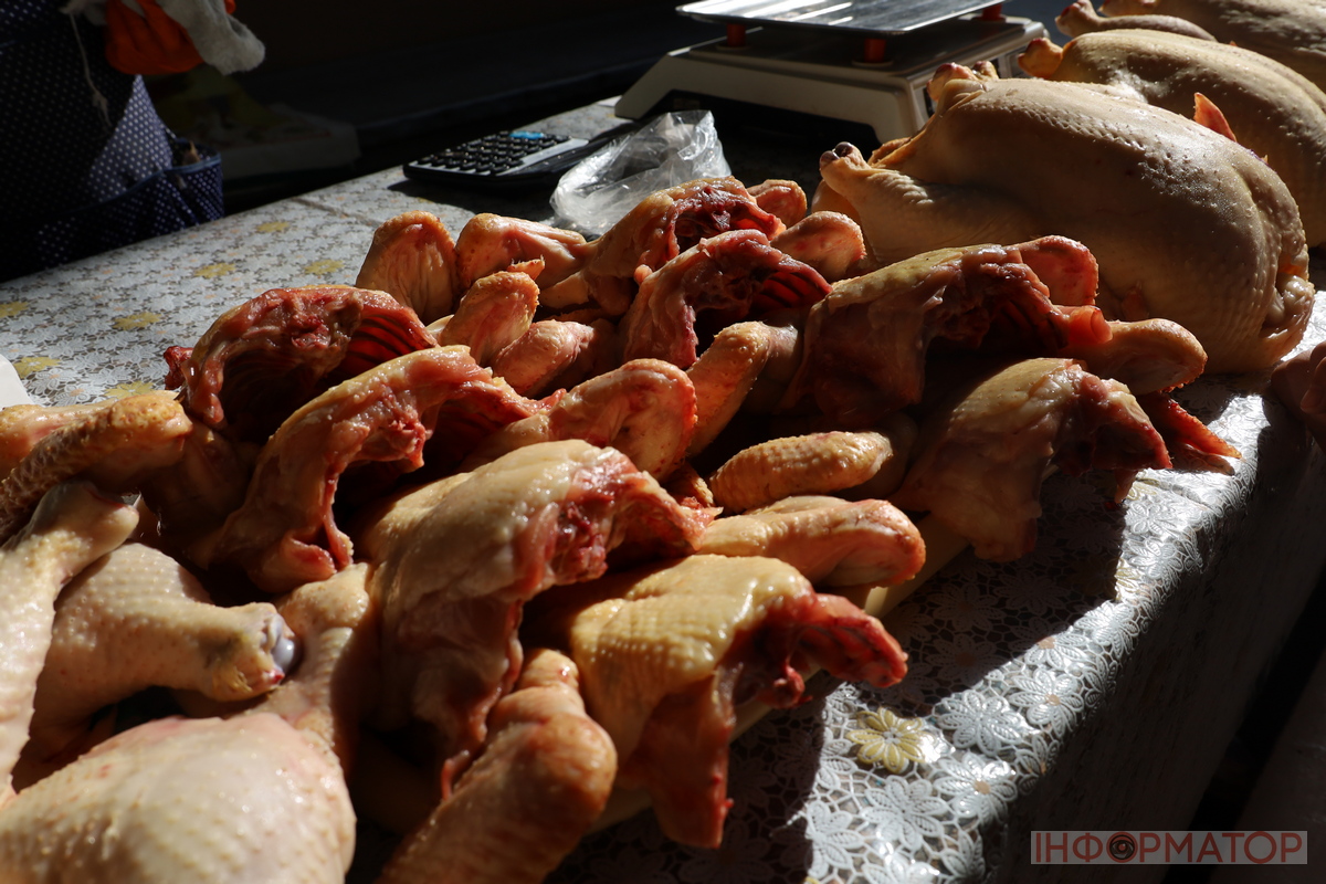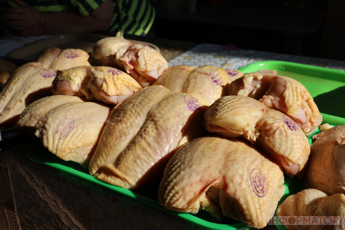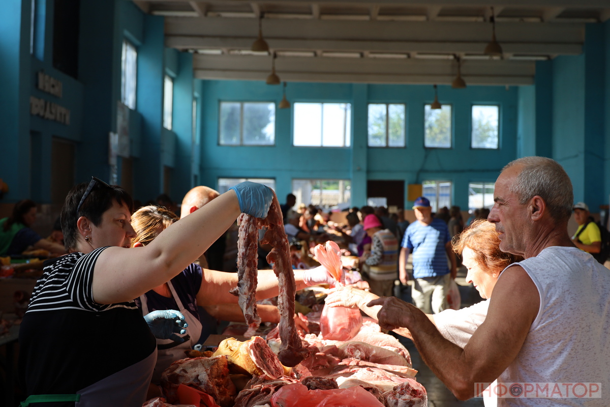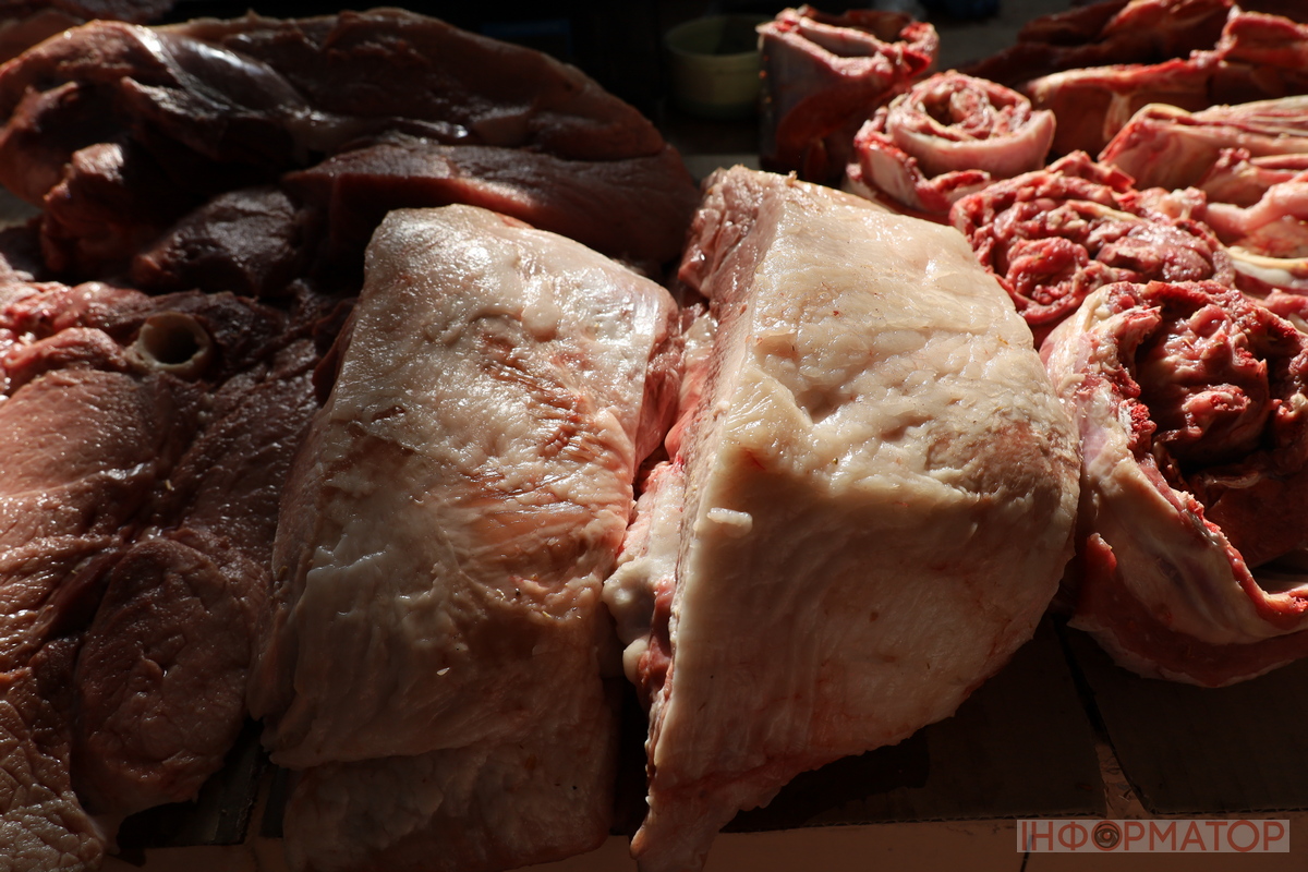 У м’ясному павільйоні панувала традиційна метушня – продавці безперервно відповідали на запитання покупців і відпускали товар. На прилавках був широкий вибір свинини, телятини, птиці. Ціни залишились на рівні минулого тижня. Свинячий ошийок і далі коштує 300-350 гривень за кілограм, а тушка курки – 150 гривень за кіло. Актуальні ціни на м’ясо та м’ясопродукти такі: