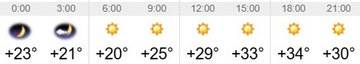 У понеділок, 7 липня, у Переяславі буде сонячно. Мінімальна температура повітря буде вранці – 20 градусів тепла. Максимальна ввечері – 34 градуси вище нуля. Про це повідомляє Інформатор, посилаючись на sinoptik.