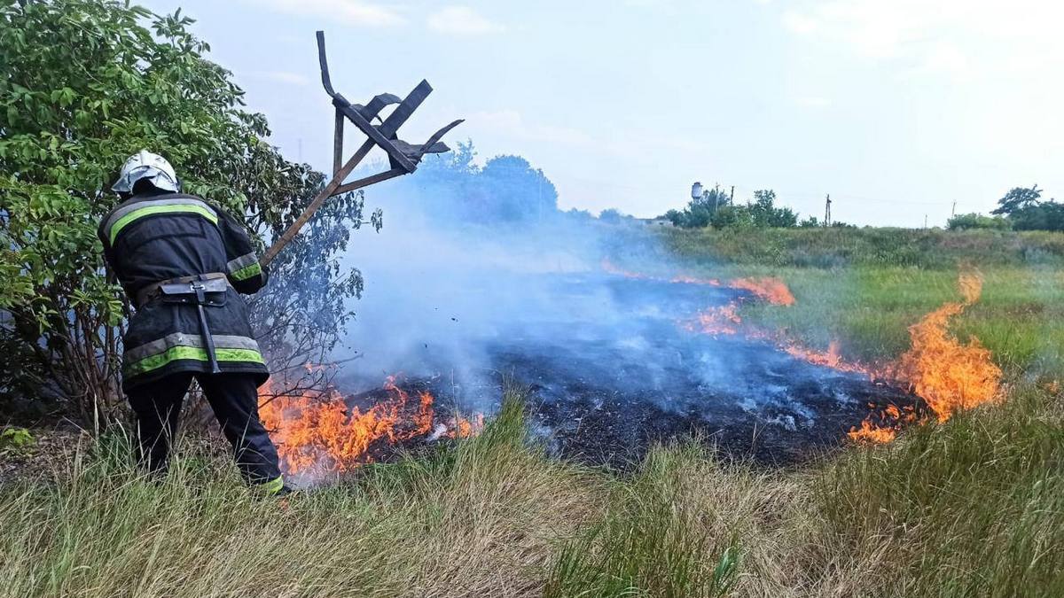 О 14:24 рятувальники прибули на місце події. Виявили, що горить трав’яний настил та чагарники на площі 0,6 га. О 14:46 через сильний вітер площа горіння збільшилася до 0,8 га. Вогнеборці працювали підручними засобами (хлопавки).