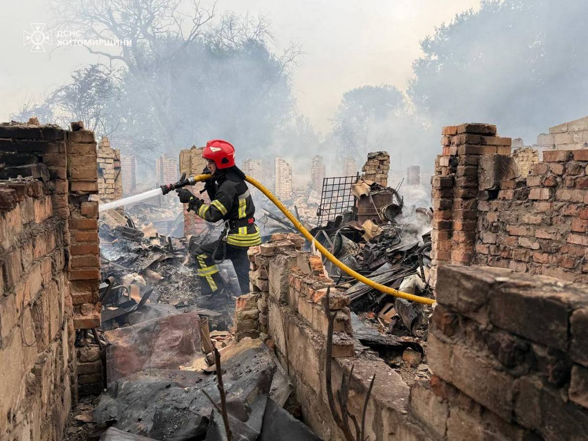 На Житомирщині внаслідок ворожої атаки зазнали пошкоджень виробничі приміщення столярного цеху та господарські будівлі, повідомили у Житомирській ОВА. Також пошкоджені скління вікон двох багатоповерхових житлових будинків.