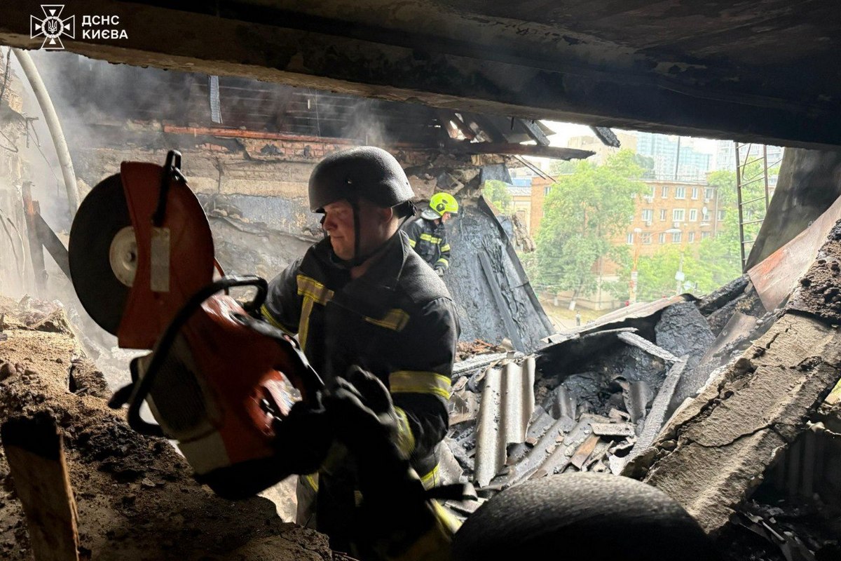 - Солом’янський район – пожежі охопили адміністративні та складські будівлі. В одній із будівель досі триває ліквідація наслідків обстрілу.