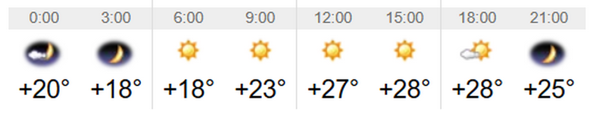 Швидкість вітру – 1-3 м/с. Вологість повітря коливатиметься між 39 та 84 відсотками протягом доби. Тривалість дня 13 липня – 16 годин. Завтра день буде на 2 хвилини коротшим, ніж сьогоднішній. Світанок настане о 4:59, а захід – о 20:59.