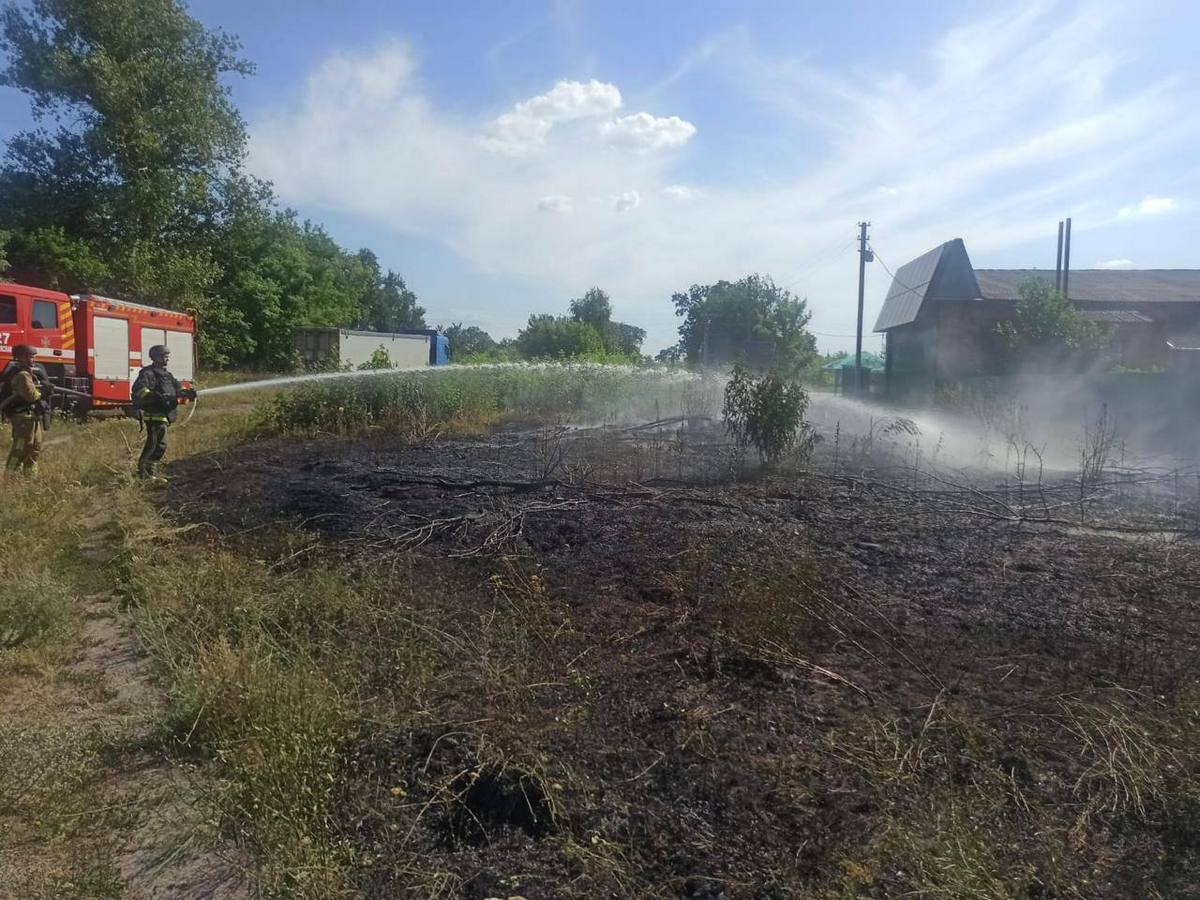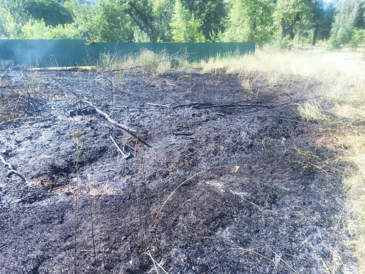 О 16:17 рятувальники прибули на місце події. Виявили, що горить трав’яний настил та гілля на площі 0,005 га.