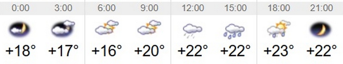 Швидкість вітру – 1-5 м/с. Вологість повітря коливатиметься між 64 та 92 відсотками протягом доби. Тривалість дня 18 липня – 15 годин 49 хвилин. Завтра день буде на 2 хвилини коротшим, ніж сьогоднішній. Світанок настане о 5:05, а захід – о 20:54.