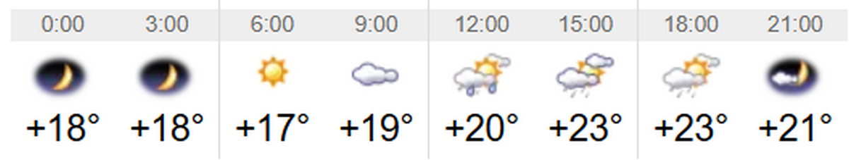 Швидкість вітру – 2-6 м/с. Вологість повітря коливатиметься між 56 та 95 відсотками протягом доби. Тривалість дня 19 липня – 15 годин 47 хвилин. Завтра день буде на 2 хвилини коротшим, ніж сьогоднішній. Світанок настане о 5:06, а захід – о 20:53.