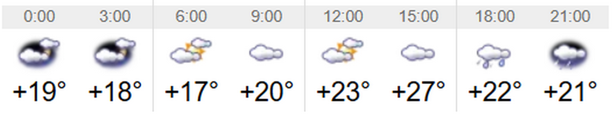 Швидкість вітру – 4-5 м/с. Вологість повітря коливатиметься між 57 та 89 відсотками протягом доби. Тривалість дня 20 липня – 15 годин 45 хвилин. Завтра день буде на 2 хвилини коротшим, ніж сьогоднішній. Світанок настане о 5:07, а захід – о 20:52.