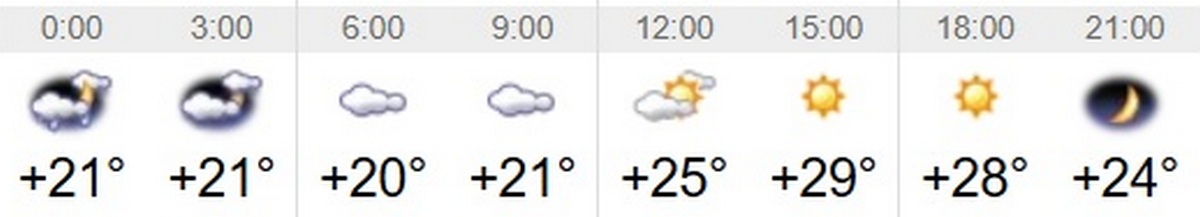 Швидкість вітру – 2-6 м/с. Вологість повітря коливатиметься між 47 та 95 відсотками протягом доби. Тривалість дня 23 липня – 15 годин 38 хвилин. Завтра день буде на 3 хвилини коротшим, ніж сьогоднішній. Світанок настане о 5:11, а захід – о 20:49.