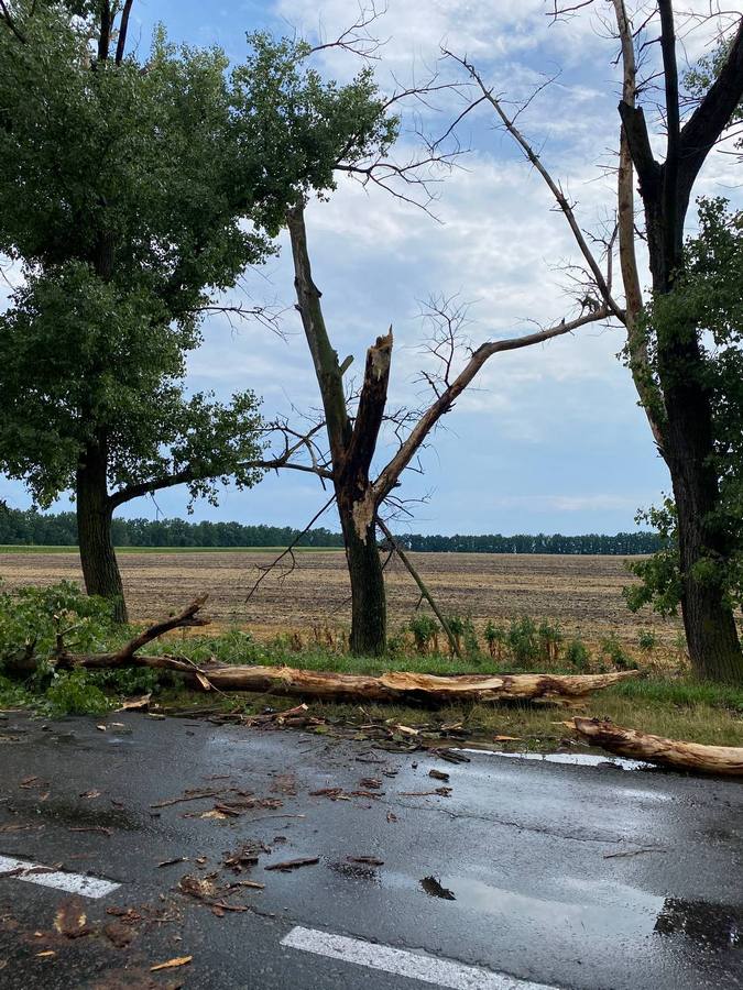15:53. Переяслав. До поліції надійшло повідомлення, що на трасі Бориспіль-Дніпро поблизу АЗС “Маршал” внаслідок негоди на дорогу впало дерево та перекрило рух транспорту. О 15:58 повідомили, що дерево впало на мікроавтобус. Зазначили, що ніхто не постраждав, а в автобусі був лише водій. Відповідні служби прибрали дерево.
