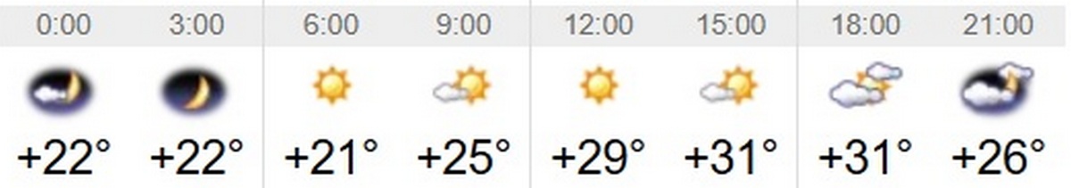 Швидкість вітру – 1-2 м/с. Вологість повітря коливатиметься між 43 та 84 відсотками протягом доби. Тривалість дня 25 липня – 15 годин 32 хвилини. Завтра день буде на 3 хвилини коротшим, ніж сьогоднішній. Світанок настане о 5:14, а захід – о 20:46.