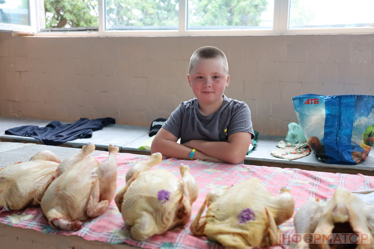 У м’ясному павільйоні вже близько восьмої ранку люди метушилися в пошуках потрібних для себе продуктів. Ціни не змінювалися протягом останніх кількох тижнів, проте продавці зазначають, що незабаром можливе їх підвищення. Та серед усіх охочих продати свій товар вирізняється п’ятикласник Назар, який майже щотижня прокидається о шостій ранку й іде на базар, щоб допомогти татові. Батько хлопця наголошує: син сам виявляє ініціативу й щиро зацікавлений у тому, щоб допомагати з торгівлею. А от ціни на м’ясну продукцію такі: