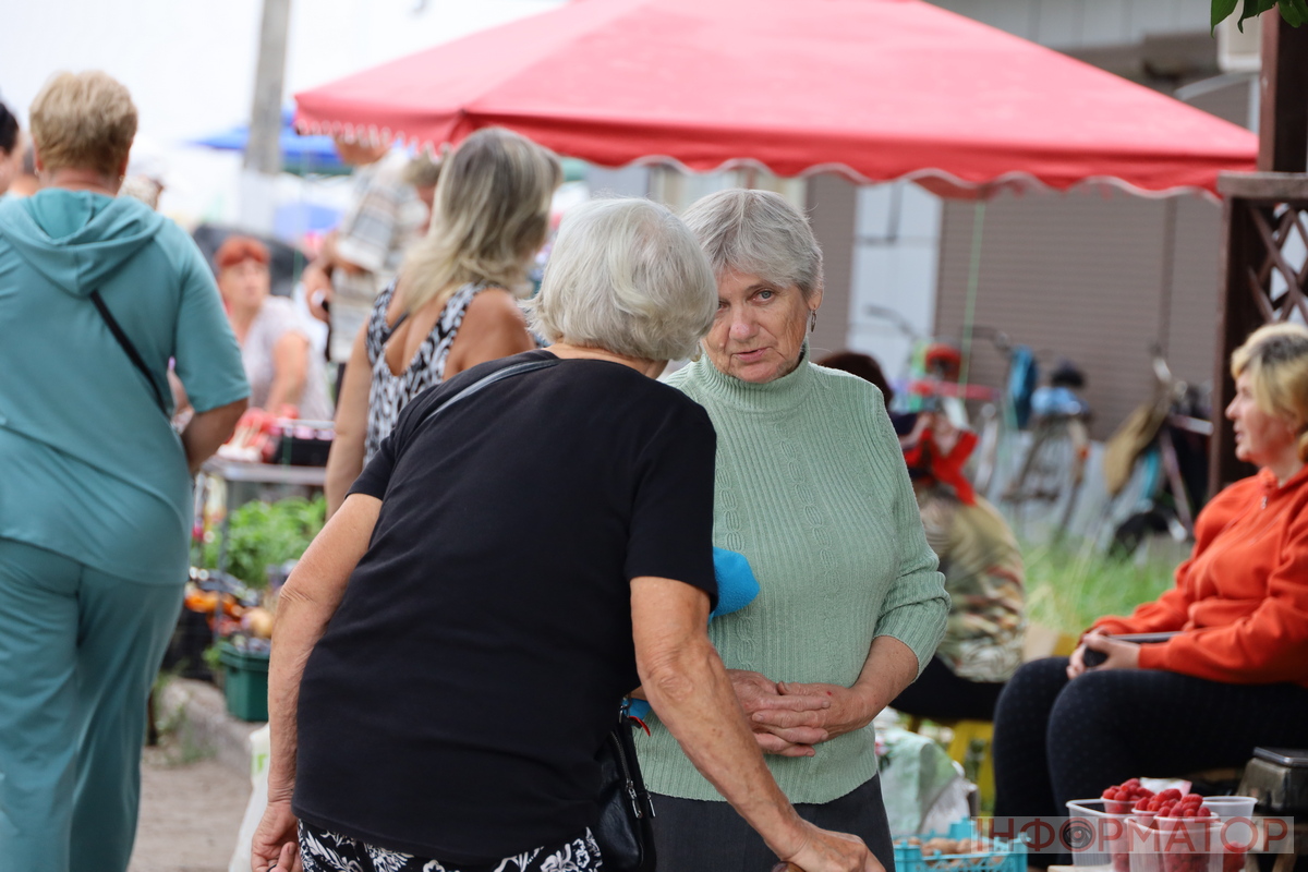 Хоч ранкову тишу в місті й порушила повітряна тривога, відбій у Бориспільському районі оголосили майже о восьмій – саме тоді, коли базар уже гудів покупками. Серед продавців пан Володимир. Він пропонує домашні кабачки, помідори й цукрову кукурудзу. Чоловік зізнається: “Ніколи не знаєш, прилетить кудись чи ні. Але жити якось треба – надіятися на краще майбутнє і вірити в хороше”.