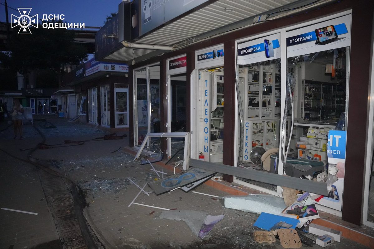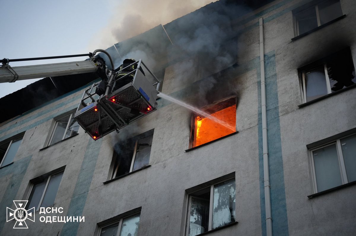В Одеській ОВА повідомили, що у передмісті Одеси внаслідок російського удару зайнялася адмінбудівля, частково зруйнована 4-х поверхова приватна будівля, гараж, пошкоджено 6 легкових автомобілів. В Одесі сталося загорання торгових павільйонів ринку. Пожежі були оперативно ліквідовані. Без постраждалих.