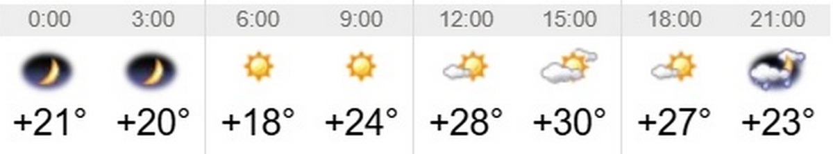 Швидкість вітру – 1-2 м/с. Вологість повітря коливатиметься між 55 та 93 відсотками протягом доби. Тривалість дня 6 серпня – 14 годин 58 хвилин. Завтра день буде на 3 хвилини коротшим, ніж сьогоднішній. Світанок настане о 5:30, а захід – о 20:28.