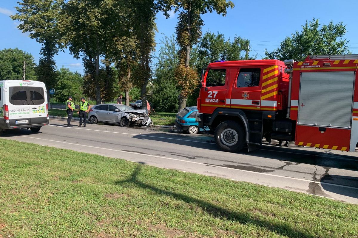 За попередніми даними від поліції, обидва автомобілі рухалися зі сторони Києва по вулиці Богдана Хмельницького в напрямку Переяслава. Під час руху водійка Opel Astra почала здійснювати поворот ліворуч на вулицю Борисівське поле. У цей момент водій Ford Focus виконував обгін та зіткнувся з Opel.