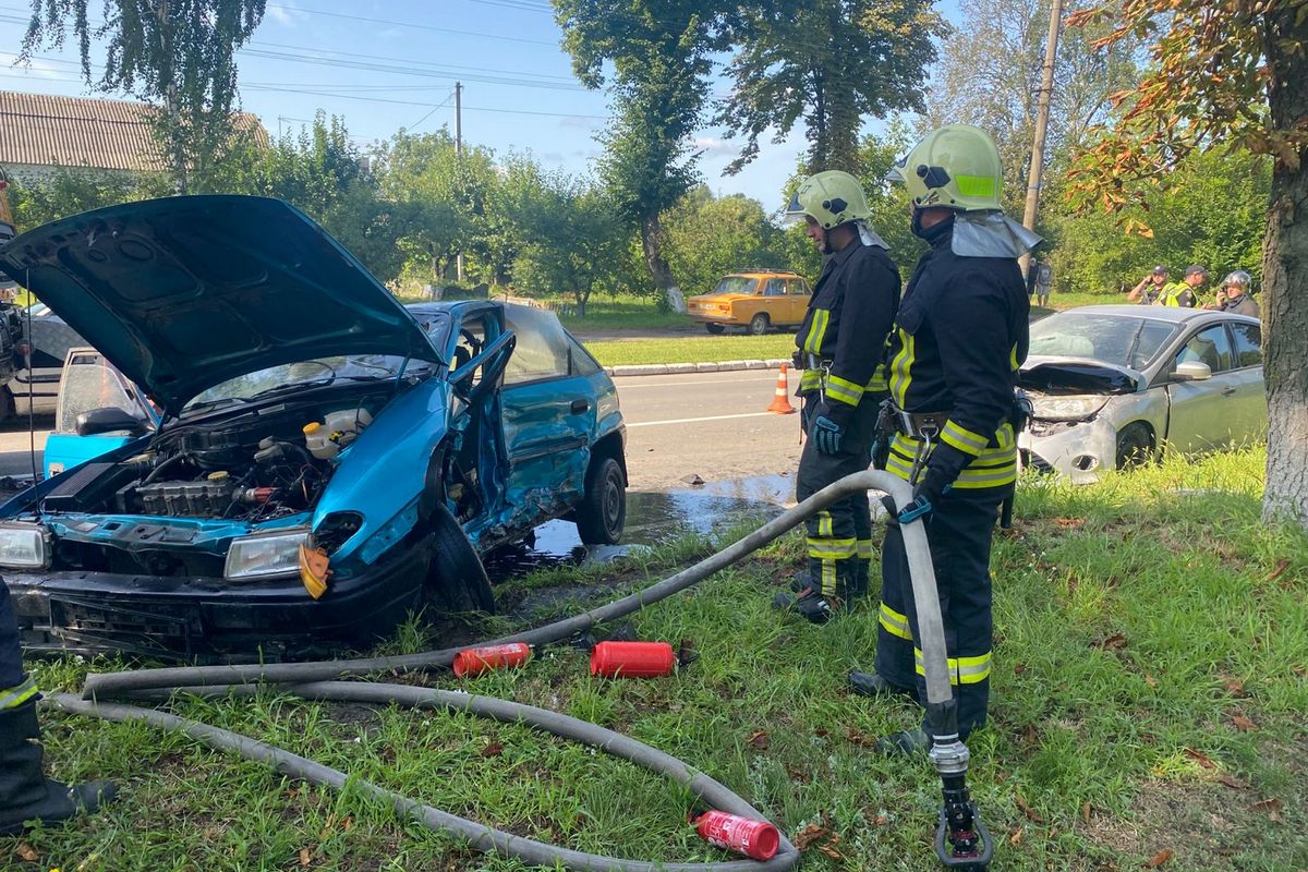 У ДСНС (Переяслав) повідомили, що на виклик направили два відділення 27-ї ДПРЧ у складі 8 осіб. Прибувши на місце події рятувальники виявили, що внаслідок ДТП сталося загорання автомобіля Opel Astra. У ньому горів моторний відсік та панель салону. Локалізували пожежу о 9:44, а о 9:47 ліквідували. В середині автівки людей не було. Ніхто не постраждав.