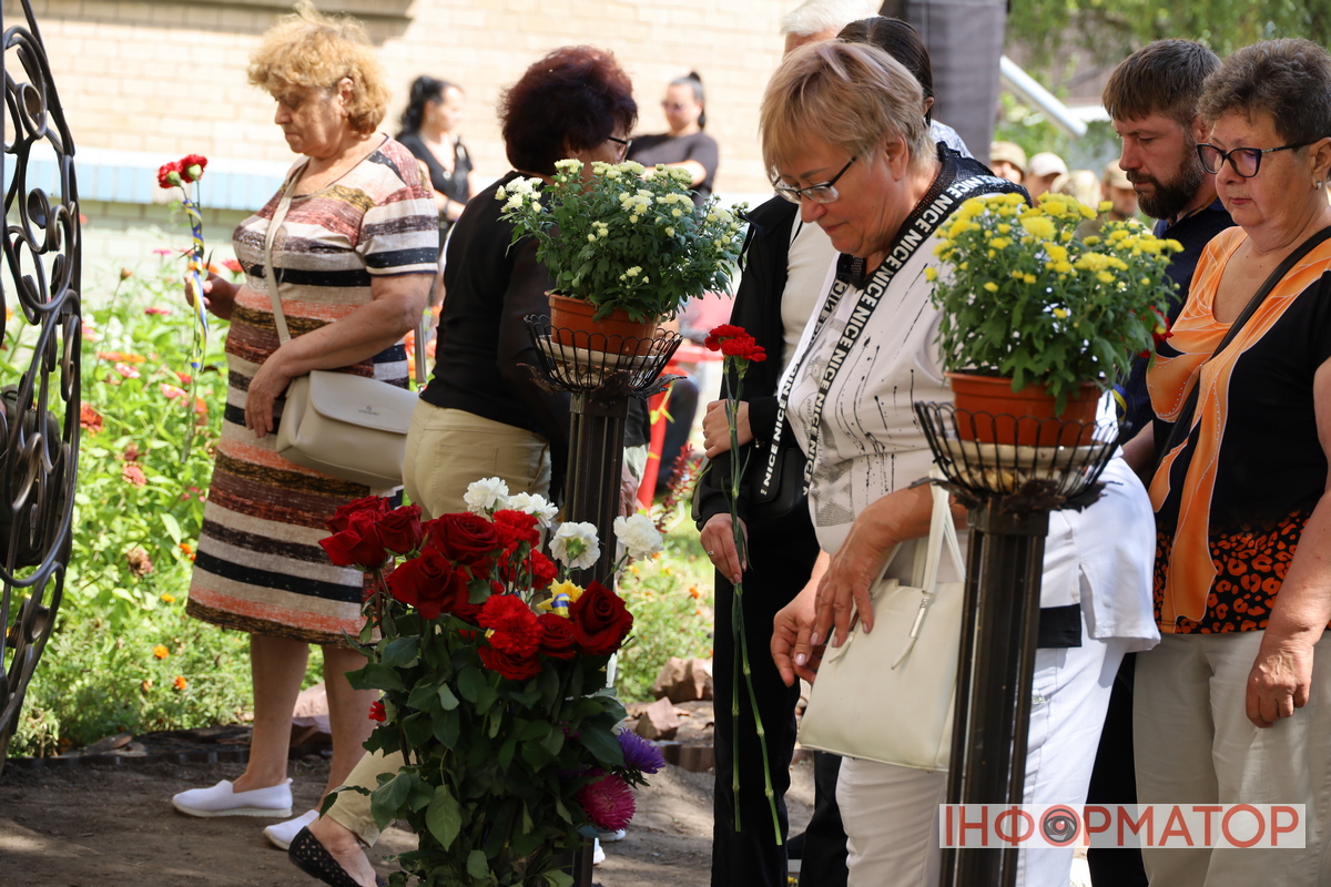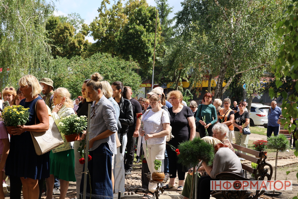Після офіційної частини відбулося покладання квітів. Люди підходили до муралу, схиляли голови та залишали букети.