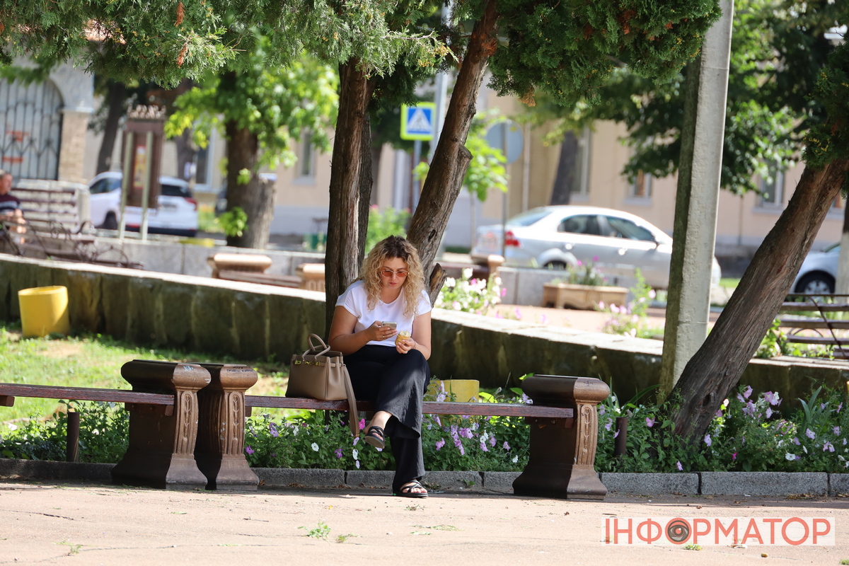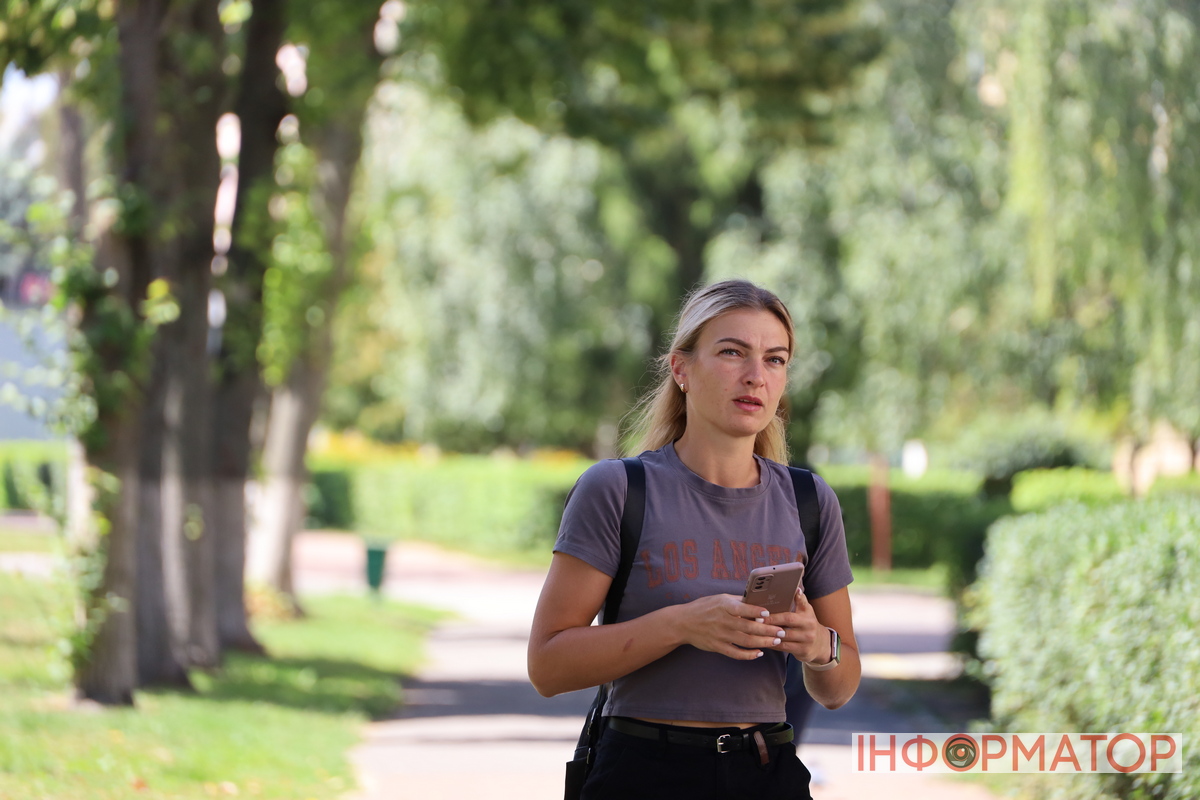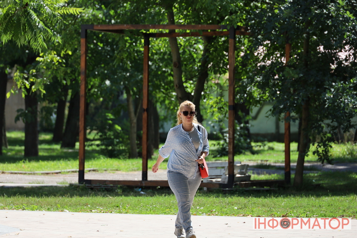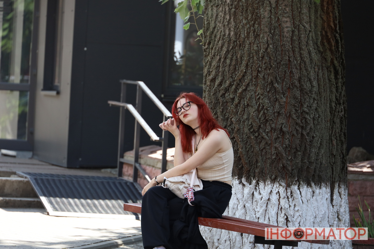 Її думку підтримує хлопець у спортивній кофті із яскравочервоним каптуром та темних сонцезахисних окулярах, який не приховує свого сарказму: “Та яка молодь? Усі або в телефонах вдома, або десь у селах. Тут у будні тільки ті, кому реально треба. Там мами он гуляють, – показує рукою в бік майданчика в парку, де гамірно від сміху дітей, – чи хтось іде в магазин. Ну… Багато хто тільки повертається з обідньої перерви, тож поспішають на роботу. А ви приходьте ввечері – тоді тут буде набагато більше молоді”.