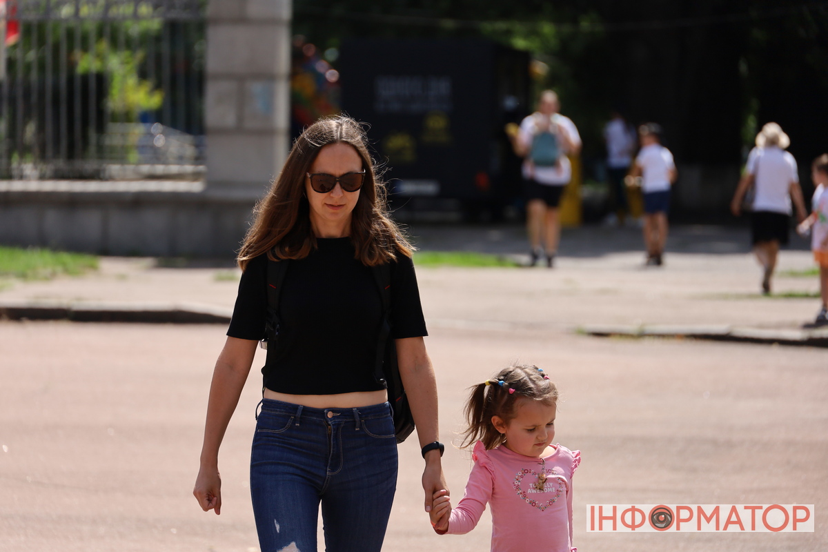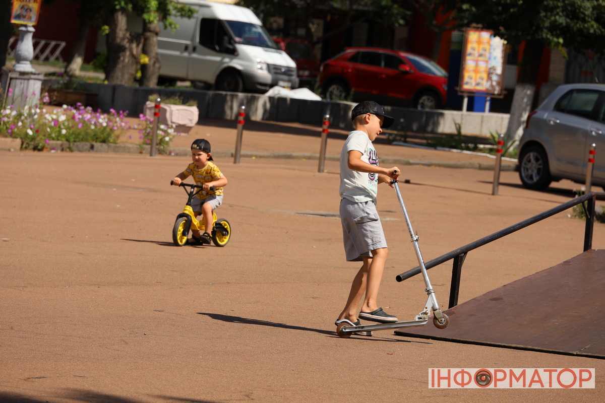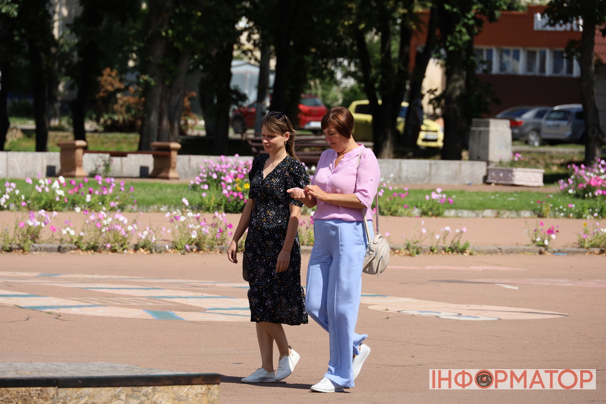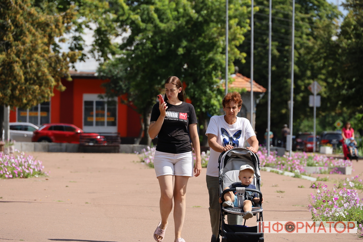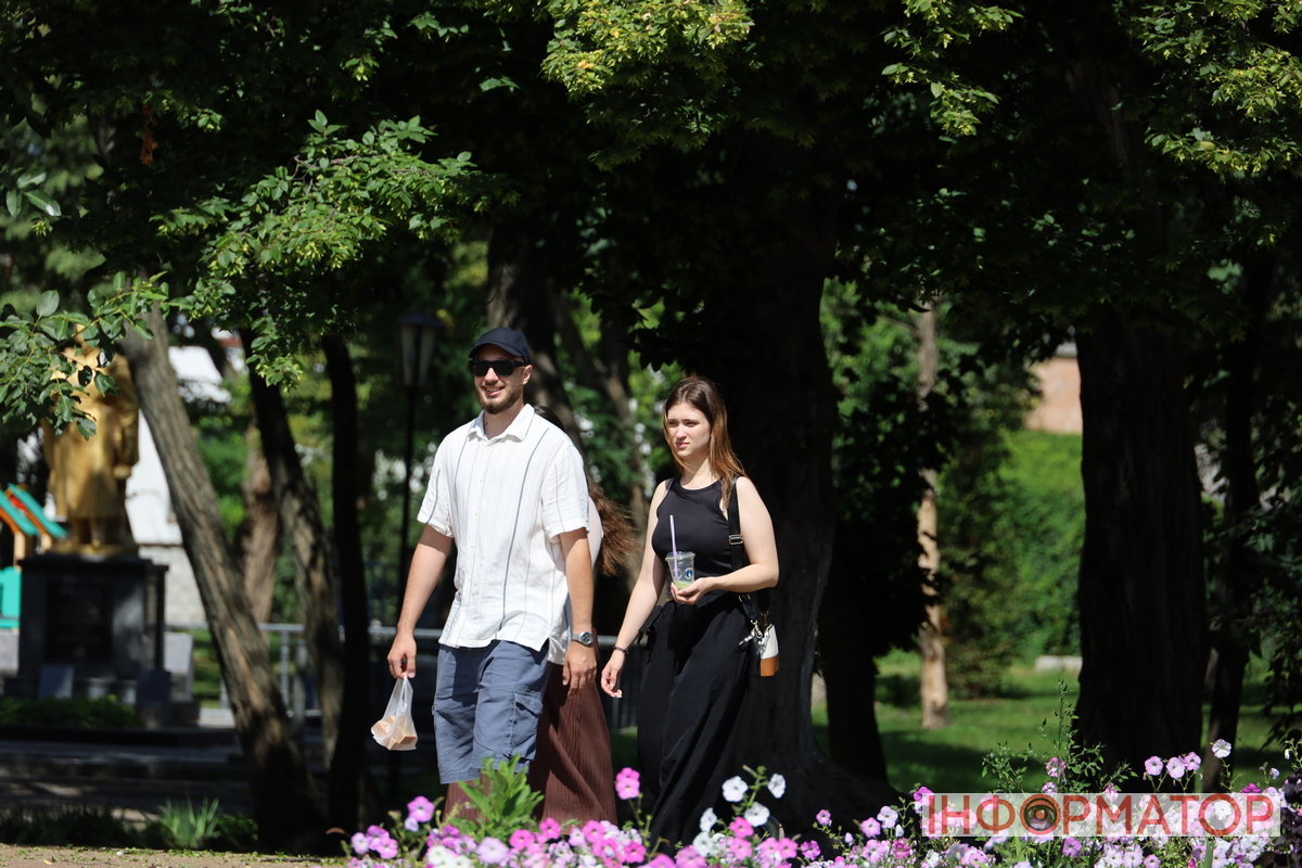 Її думку підтримує хлопець у спортивній кофті із яскравочервоним каптуром та темних сонцезахисних окулярах, який не приховує свого сарказму: “Та яка молодь? Усі або в телефонах вдома, або десь у селах. Тут у будні тільки ті, кому реально треба. Там мами он гуляють, – показує рукою в бік майданчика в парку, де гамірно від сміху дітей, – чи хтось іде в магазин. Ну… Багато хто тільки повертається з обідньої перерви, тож поспішають на роботу. А ви приходьте ввечері – тоді тут буде набагато більше молоді”.