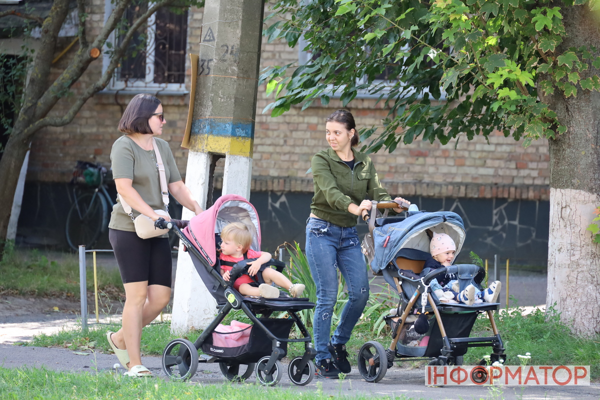 Мами прогулюються з дітьми і радо спілкуються між собою