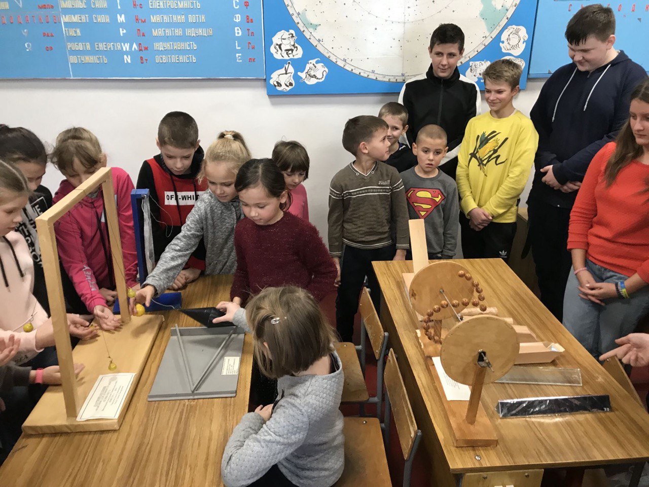 Школярі випробовують фізичні прилади