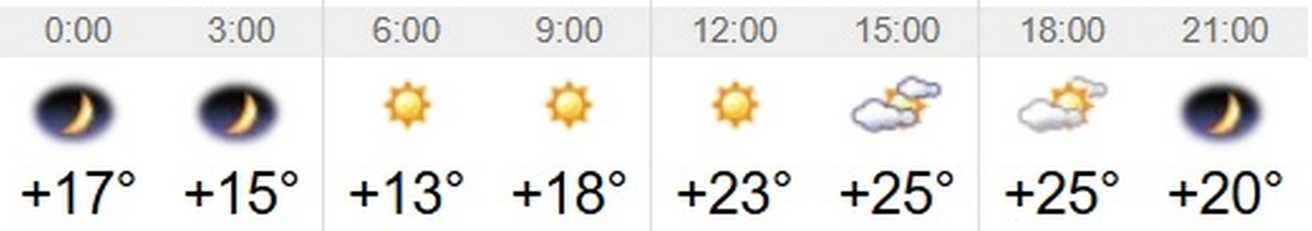 Швидкість вітру – 2-4 м/с. Вологість повітря коливатиметься між 45 та 80 відсотками протягом доби. Тривалість дня 15 серпня – 14 годин 28 хвилин. Завтра день буде на 4 хвилини коротшим, ніж сьогоднішній. Світанок настане о 5:44, а захід – о 20:12.