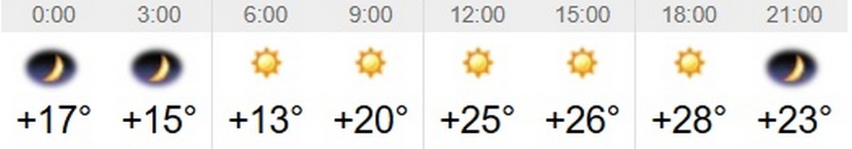 Швидкість вітру – 1-3 м/с. Вологість повітря коливатиметься між 44 та 91 відсотком протягом доби. Тривалість дня 16 серпня – 14 годин 25 хвилин. Завтра день буде на 3 хвилини коротшим, ніж сьогоднішній. Світанок настане о 5:45, а захід – о 20:10.
