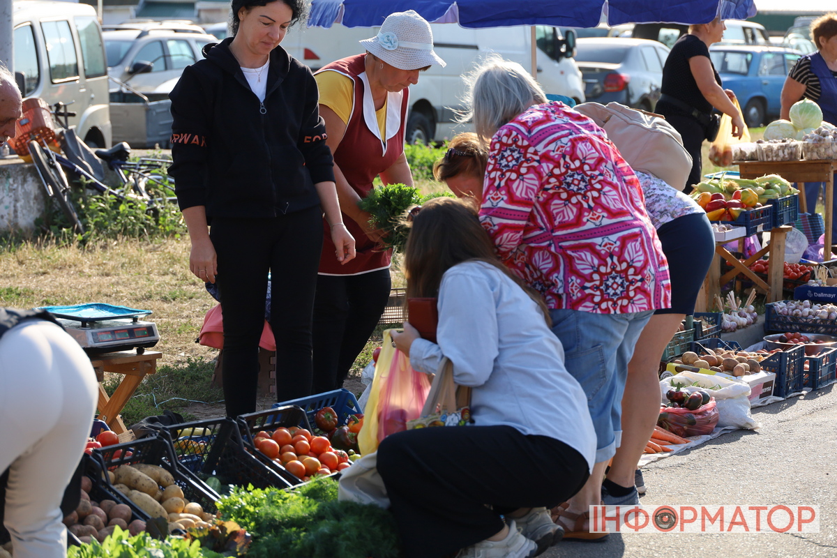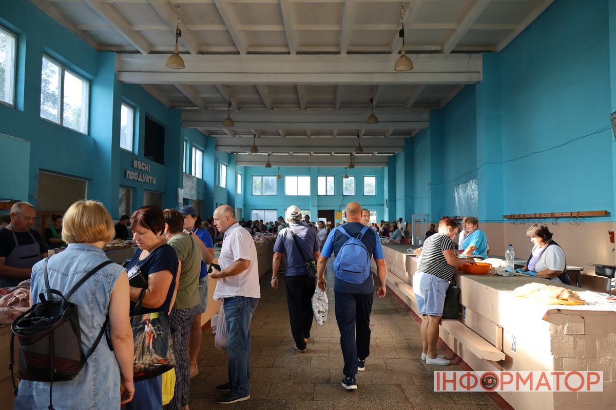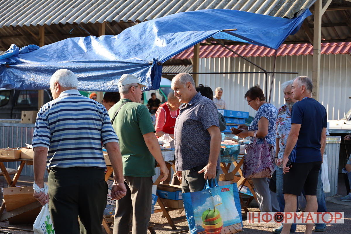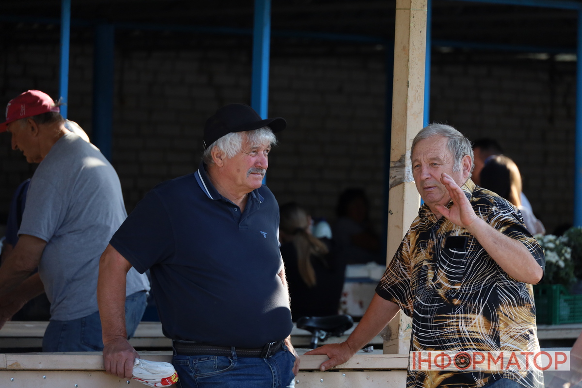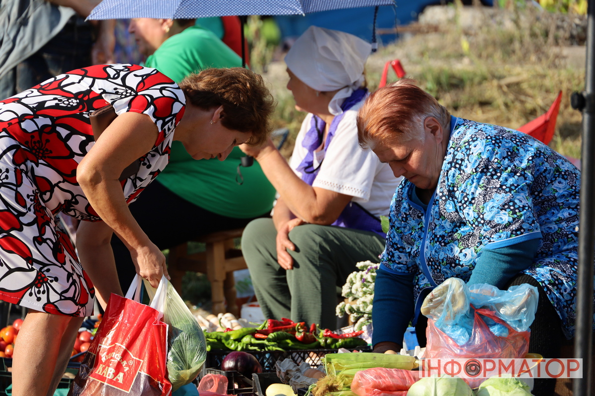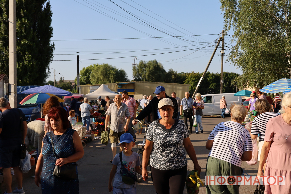 17 серпня у неділю, базар виглядав по-особливому. Сонце світило, але вже без тої притаманної літньої спеки. Теплі дні стають коротшими, а в повітрі вже ніби відчувається осінь. Люди неспішно йшли рядами, хтось із кошиками, хтось із пакетами. Звідусіль чулися традиційні базарні розмови “От продам яблука, а тоді з сусідкою підемо в ліс по гриби. Кажуть, після дощів їх більше буде”. Двоє чоловіків розмовляли про врожай: “Я сьогодні після базару копатиму картоплю, бо вже ж пора, – говорить один. “Та яка там картопля! Дощу треба, а його все немає”, – відповідає йому інший. І справді, спека в серпні вже втомила. У розмовах між рядами часто можна було почути: “Нехай уже дощик піде“. Хоча водночас усі розуміють, що після дощів базарні прилавки наповняться грибами, сливами й гарбузами – серпень поступово віддає місце вересню. Базар живе своїм ритмом. Хтось торгується, хтось просто розмовляє, а хтось навіть сперечався – чи то про ціни, чи про щось особисте. На прилавках ще багато городини, яку продавці “допродують”. Кавуни подекуди трохи здешевіли: середня ціна – 15-21 гривня за кілограм. Яблука різних сортів від 25 до 40 гривень, сливи – по 40-110. Окрім продуктів, на базарі можна було знайти й квіти. Найчастіше продавали айстри – за одну просили від 5 до 10 гривень, а готові букети в середньому коштували близько 50 гривень. Люди часто зупинялися, щоб купити хоча б невеличкий букет для дому чи на подарунок. Інформатор традиційно розповідає про ціни на продукти та інше.