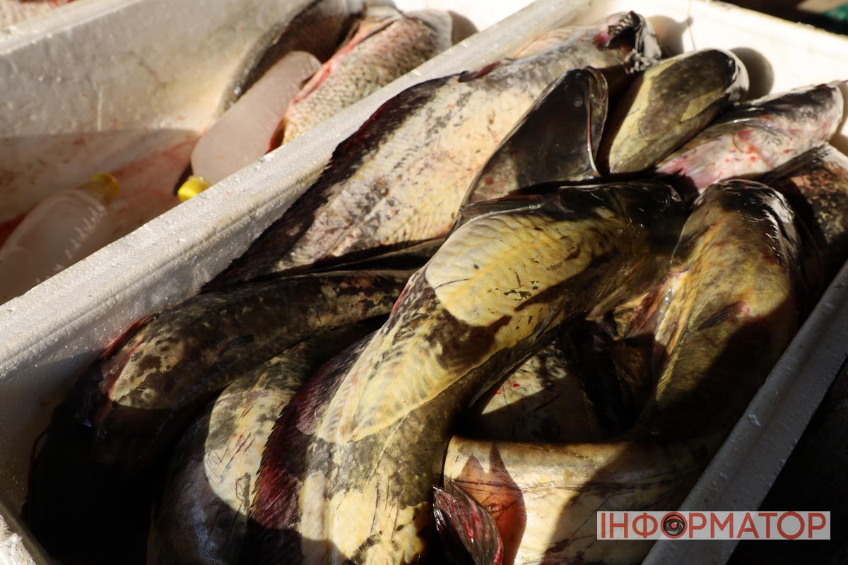 У продажу є судаки – ціна на цю рибу коливається від 170 до 180 гривень за кілограм, залежно від того, чи це ціла риба, чи вже очищена. Серед морепродуктів виділяються креветки, які коштують близько 500 гривень за кілограм. Вони залишаються затребуваними серед любителів морської кухні.