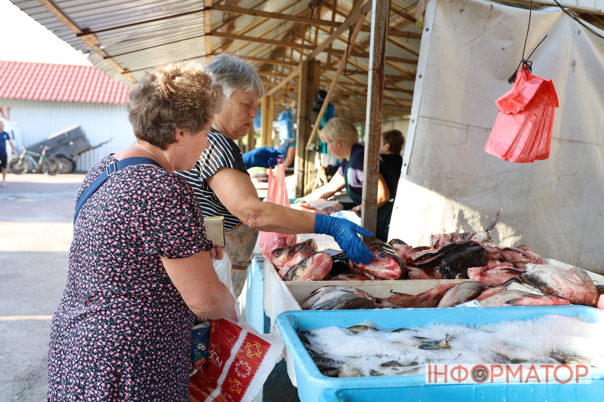 Ще до восьмої години біля столів рибних яток уже збиралися покупці, роздивляючись лящів, карасів та коропів. “Раніше було більше риби, а тепер трохи менши вибір, зате все свіже”, – обговорювали між собою люди. Дехто планував, як приготувати улов – “Я сьогодні смажу, а ввечері буду коптити трохи”, – ділився один із покупців. Інші радилися про маринування та зберігання, обмінюючись досвідом. Атмосфера була живою, з відчуттям ранкового ритму базару, де кожен поспішав придбати свіжий продукт, обираючи найкраще для сімейного столу. Рибний ряд залишався тихим, але водночас сповненим звичних базарних турбот та очікування приємних кулінарних моментів.