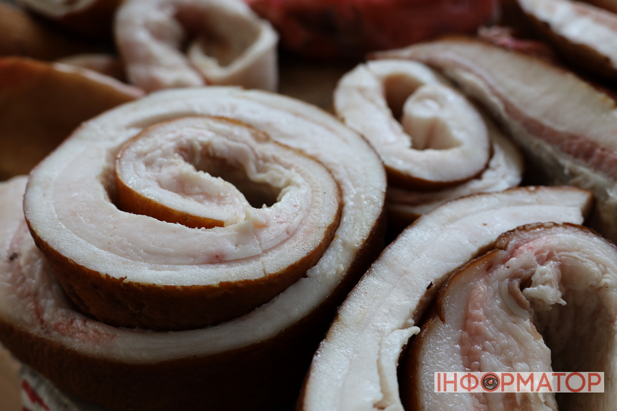 У м’ясному павільйоні подекуди прилавки були порожніми, але постійні продавці вже розклали товар і зустрічали покупців. Ціни залишаються стабільними. Сало коштувало від 300 до 350 гривень. Найбільший попит був на свинину. Покупці підходили, роздивляли шматки, уважно розпитували, і зрештою брали саме її. Биток свинячий пропонували від 200 до 270 гривень за кілограм. Антрекот у межах 250-300 гривень за кілограм, а свинячий ошийок – 300-350 гривень за кіло (подекуди продавали і по 370 гривень). Торгівля йшла спокійно, без поспіху, ніби й сам базар ще ледь прокидався.