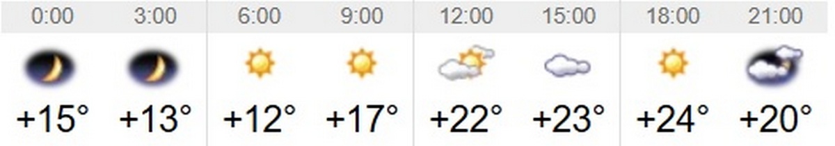 У вівторок, 19 серпня, у Переяславі зранку буде сонячно, потім хмарно з проясненнями. Без опадів. Мінімальна температура повітря буде вранці – 12 градусів тепла. Максимальна ввечері – 24 градуси вище нуля. Про це повідомляє Інформатор, посилаючись на sinoptik.
