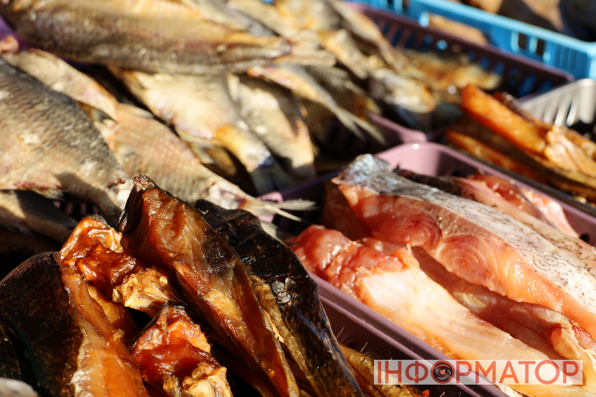 На базарі сьогодні пропонували судака – його ціна складала 170-180 гривень за кілограм, залежно від того, чи риба ціла, чи вже оброблена. Серед морепродуктів особливо помітні були креветки, які продавали приблизно по 500 гривень за кілограм. Вони користуються попитом серед шанувальників морської кухні. На інше ціни такі: