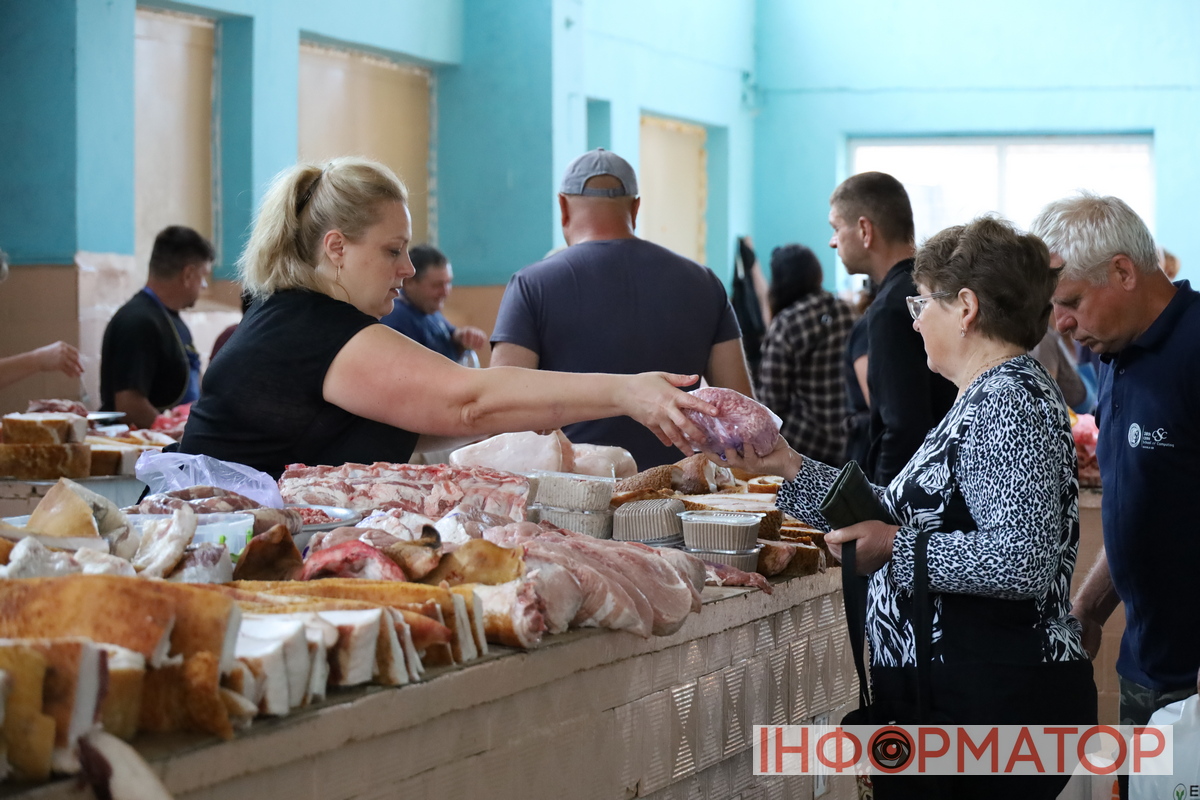 У м’ясному павільйоні значно більше асортименту, ніж минулого тижня. Постійні продавці залишились – ціни подекуди змінились. Так, сало коштувало від 300 до 350 гривень, трошки зросла вартість і тепер його можна було придбати і по 380 гривень за кілограм. Биток свинячий пропонували від 200 до 380 гривень за кілограм. Антрекот у межах 250-350 гривень за кілограм, а свинячий ошийок – 320-350 гривень за кіло (подекуди продавали і по 380 гривень). Підчеревина значно зросла у вартості. Тепер її продають по 450-500 гривень за кілограм (була по 350-450 гривень за кілограм).