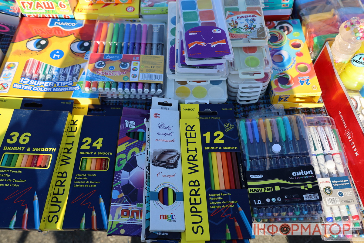 Перше, про що замислюються батьки, коли дитина готується до школи – це канцелярське приладдя. Зошити, ручки, олівці, щоденники та безліч дрібниць, без яких не обійтися під час навчання. Якщо раніше більшість батьків відправлялися за всім необхідним на базар, то зараз ситуація змінилася. “Зараз не так популярно купувати канцелярію на ринку. Переважно люди обирають великі магазини, як-от “Аврора” чи інші якісь, де є ширший вибір і інші ціни”, – розповідає одна з продавчинь.