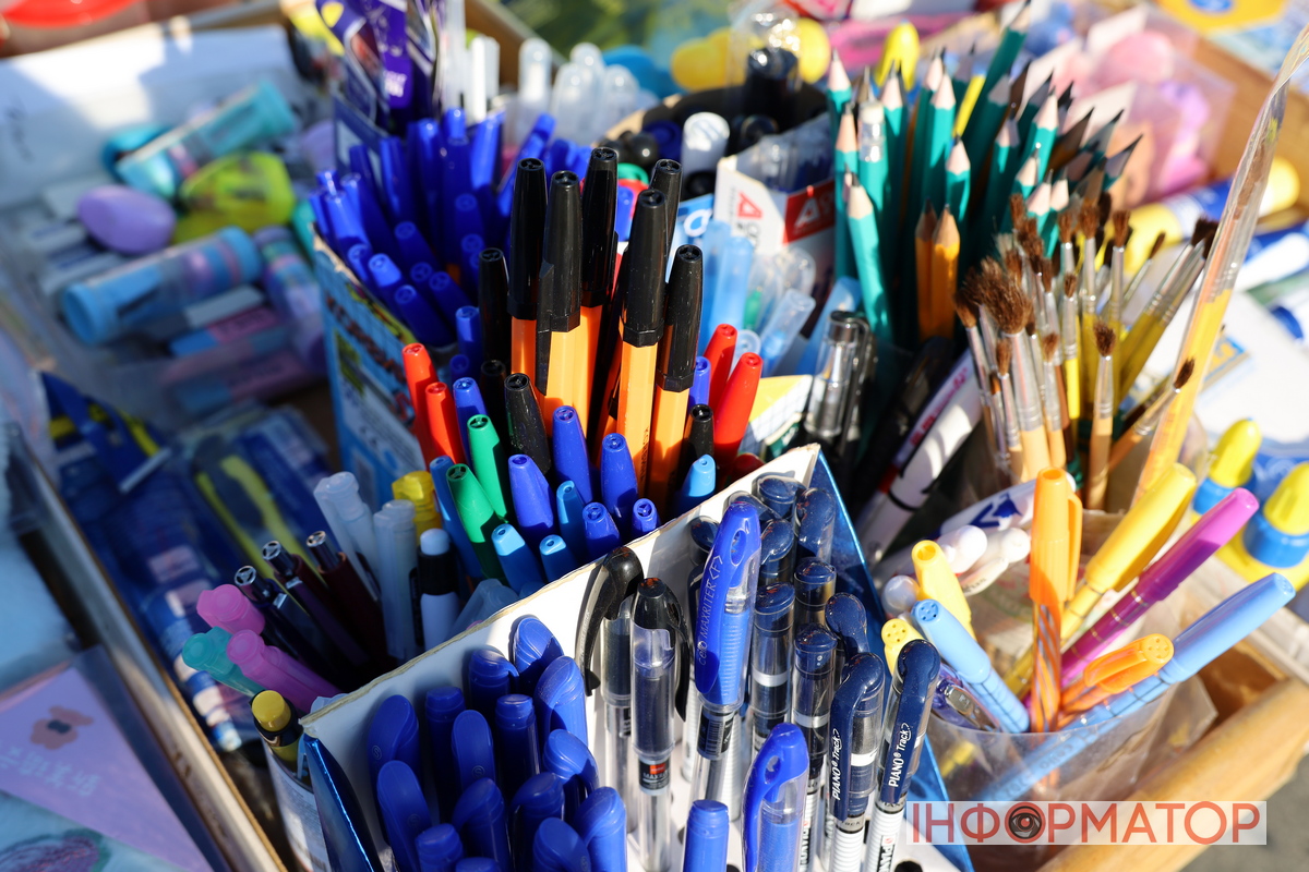 Серед шкільного приладдя особливу увагу батьки приділяють канцтоварам для творчих завдань. Кольорові олівці продають у пачках по 12, 24 та 36 штук. Вони різняться якістю, а відтак і ціною – від 40 до 90 гривень. Для малювання також пропонують фарби: акварель та гуаш у наборі на різну кількість кольорів коштують від 60 до 170 гривень. Не обійтися й без клею. Звичайний ПВА та клей із пензликом продають за 25-50 гривень, ціна залежить від розміру баночки. Ще одна необхідність – ручки та прості олівці. Їхня базова ціна стартує від 6 до 15 гривень. “Є ще так звана “кілометрова” ручка – вона дозволяє писати дуже багато, тому її вартість вища – 30 гривень”, – розповідає продавчиня.