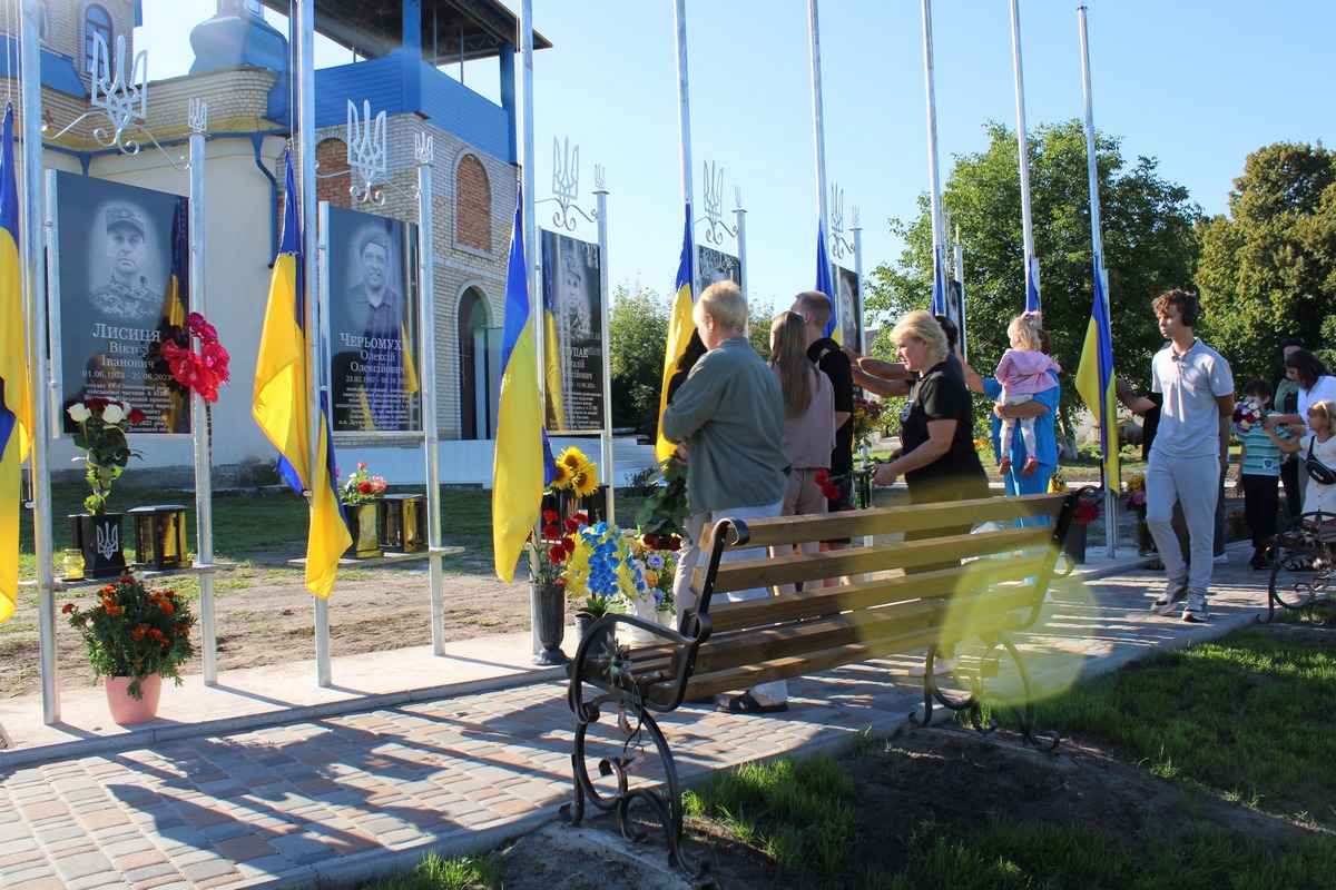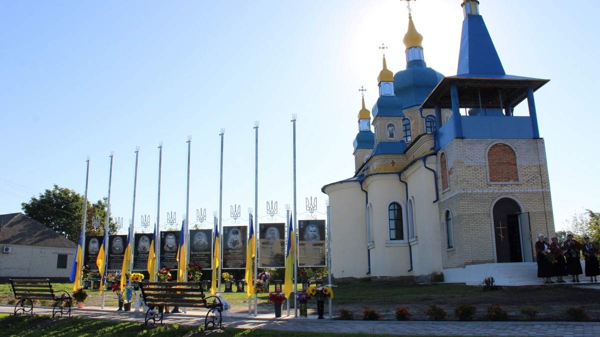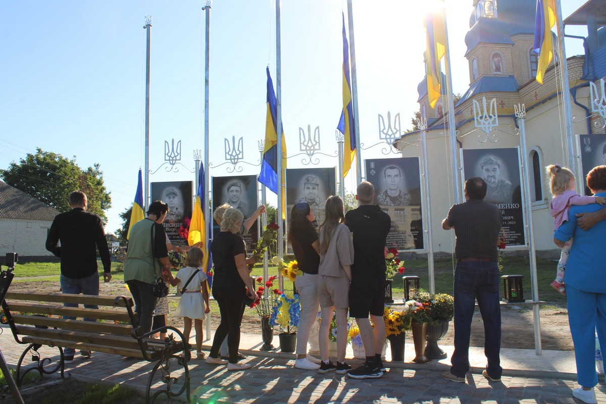 Вісім пам’ятних дошок відкрили біля Храму на честь Вознесіння Господнього. На них викарбували портрети та імена загиблих захисників із села. Серед них: