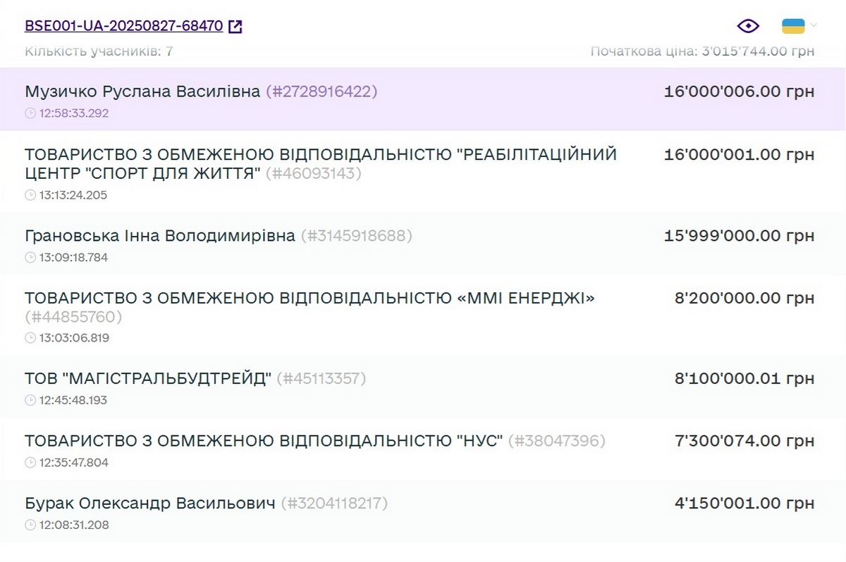 Згідно з даними Youcontrol, Руслана Музичко є засновницею адвокатського бюро “Руслана Музичко” в Києві. Серед її конкурентів – ТОВ “Реабілітаційний центр “Спорт для життя”, яке зробило лише на 5 гривень меншу пропозицію, Грановська Інна Володимирівна, яка зробила на 7 гривень меншу пропозицію, інші пропонували принаймні майже вдвічі менше.