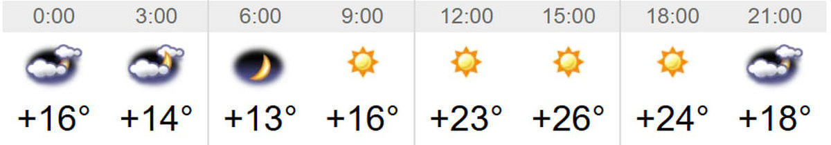 Швидкість вітру – 1-4 м/с. Вологість повітря коливатиметься між 34 та 73 відсотками протягом доби. Тривалість дня 16 вересня – 12 годин 34 хвилини. Завтра день буде на 3 хвилини коротшим, ніж сьогоднішній. Світанок настане о 6:31, а захід – о 19:05.