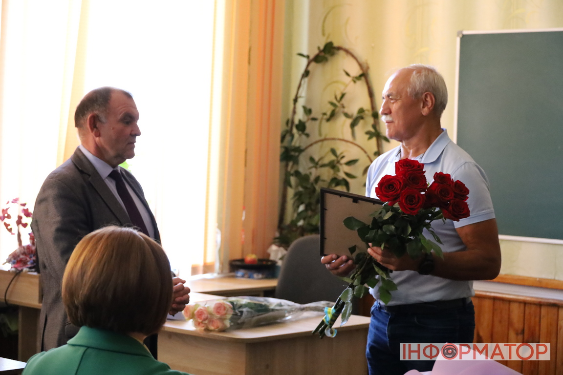 Викладачі привітали Олександра Батрака квітами та подарунками, висловивши таким чином свою повагу до керівника. Після урочистого моменту всі разом зробили колективне фото біля входу до закладу.