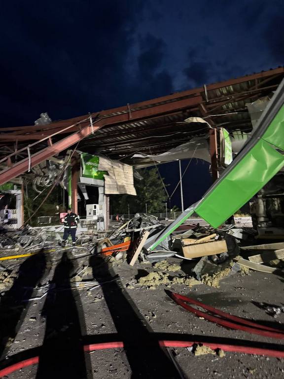 На Полтавщині вснаслідок повітряної атаки зруйновано місцеву АЗС, знищені та пошкоджені автомобілі. Шість людей із різними ступенями поранень доставили каретами швидкої до лікарень.