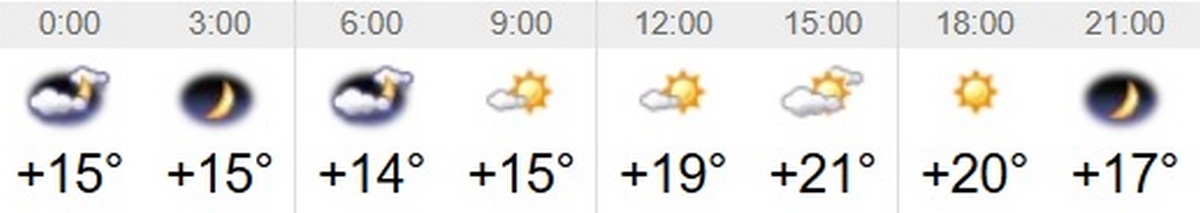 Швидкість вітру – 1-5 м/с. Вологість повітря коливатиметься між 52 та 94 відсотками протягом доби. Тривалість дня 20 вересня – 12 годин 19 хвилин. Завтра день буде на 3 хвилини коротшим, ніж сьогоднішній. Світанок настане о 6:37, а захід – о 18:56.