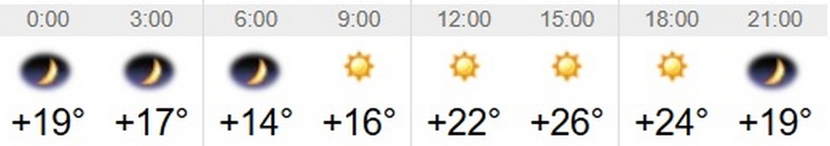 Швидкість вітру – 3-5 м/с. Вологість повітря коливатиметься між 48 та 75 відсотками протягом доби. Тривалість дня 23 вересня – 12 годин 7 хвилин. Завтра день буде на 4 хвилини коротшим, ніж сьогоднішній. Світанок настане о 6:42, а захід – о 18:49.