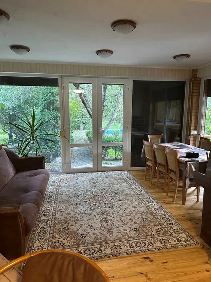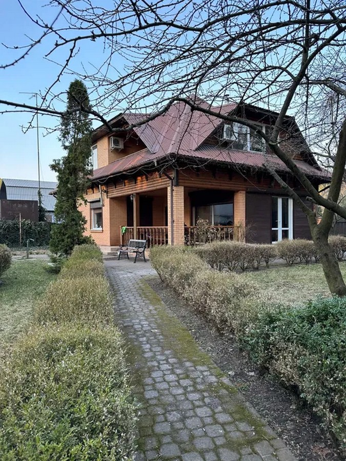 За 7 кілометрів від Переяслава у садовому товаристві “Швейник” на березі річки Дніпро та біля соснового лісу продається двоповерховий будинок з гаражем та терасою (18 кв. метрів). Також є лоджія (15 кв. метрів) та мансарда. Будинок з великими панорамними вікнами має три спальні, п’ять кімнат, два санвузли, вітальню з каміном, столову та кухню. Є окрема фінська сауна з басейном, а також відкритий басейн. На території – господарська будівля, спортивний майданчик, піщаний пляж.