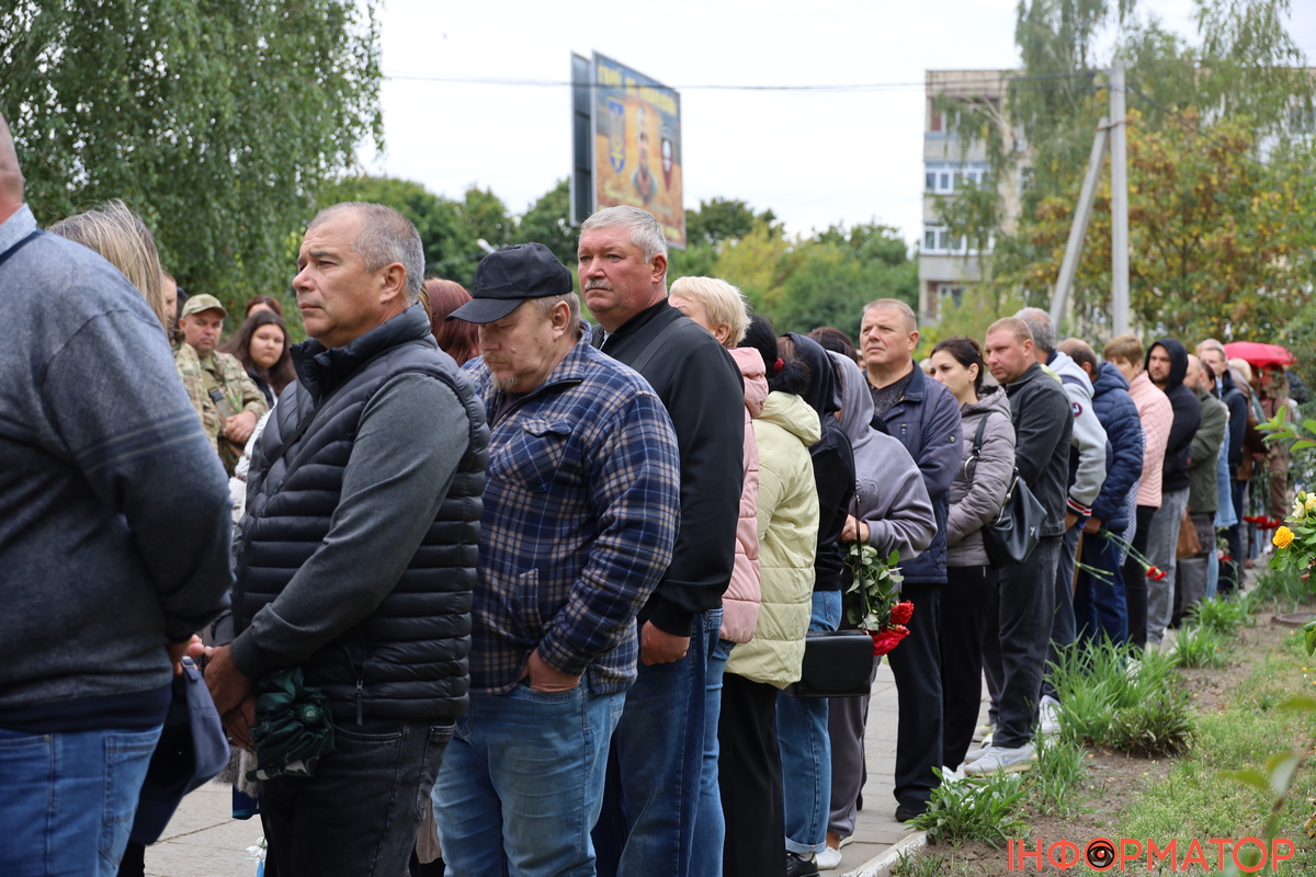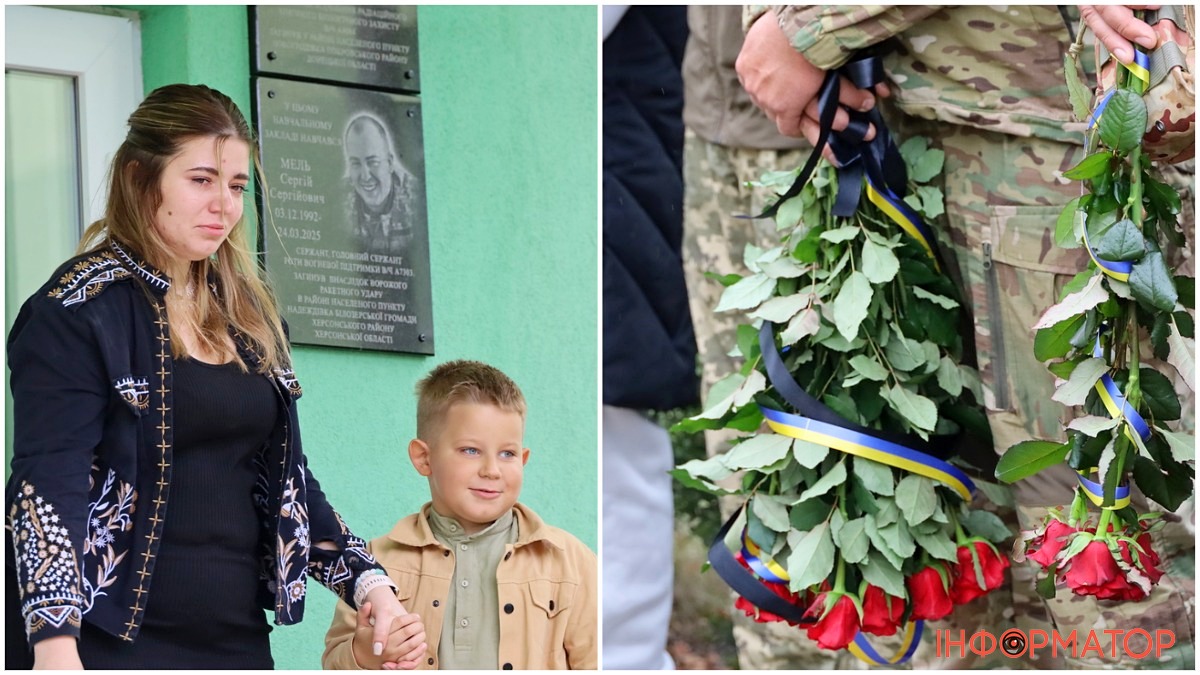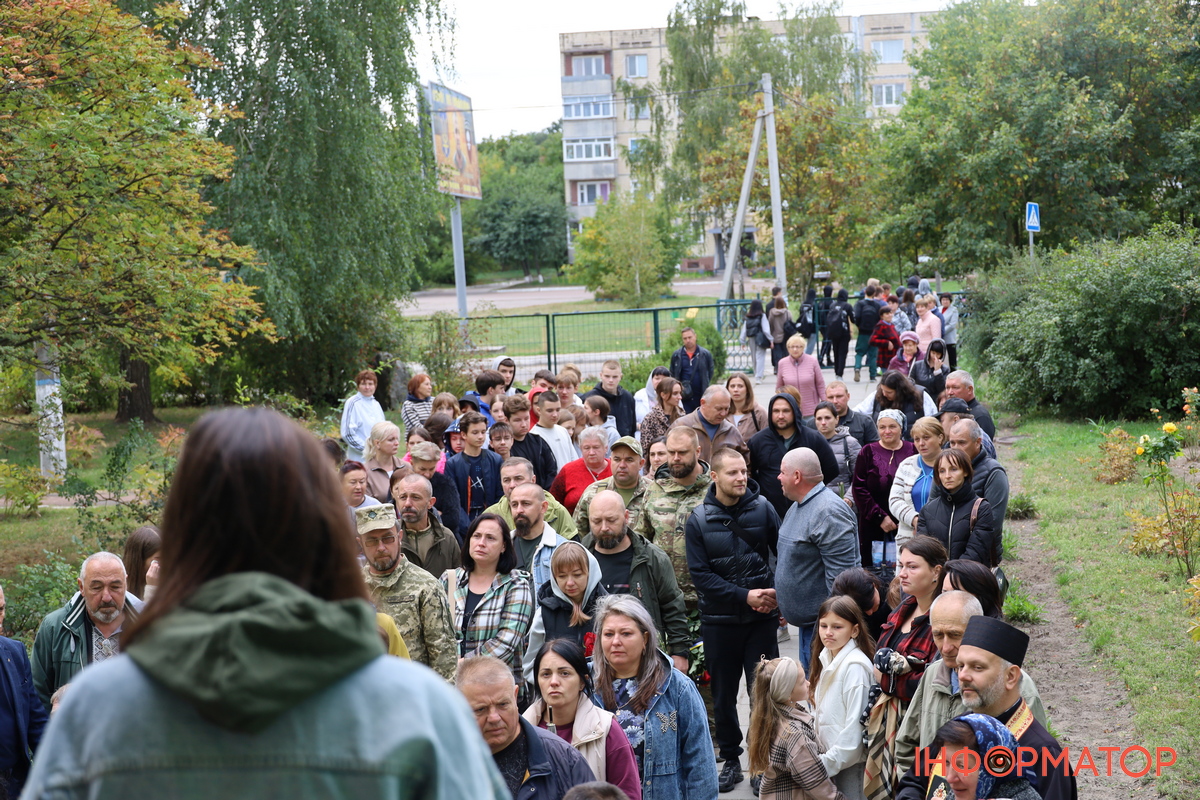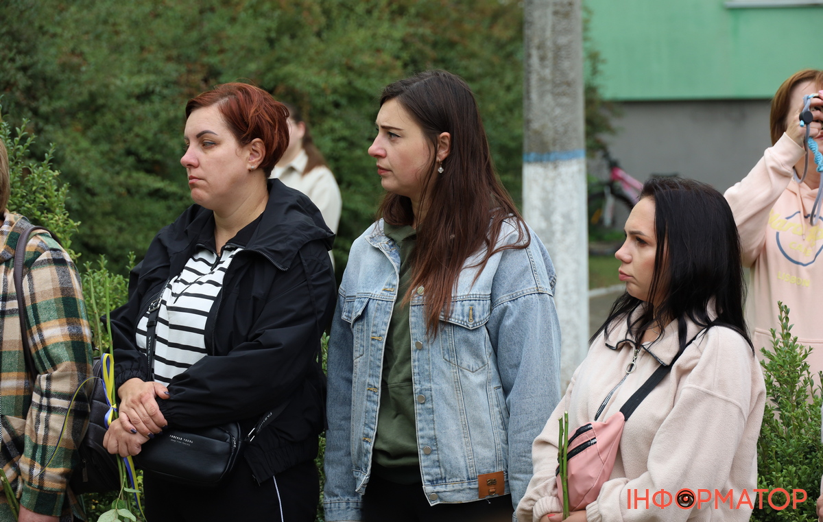 Накрапав дощ, на шкільному подвір’ї у два ряди вишикувались люди – від сходинок ліцею і до вхідних воріт. Всі вони – близькі, рідні та знайомі захисника Сергія Меля, чию пам’ять цього дня навічно закарбували на стіні навчального закладу.