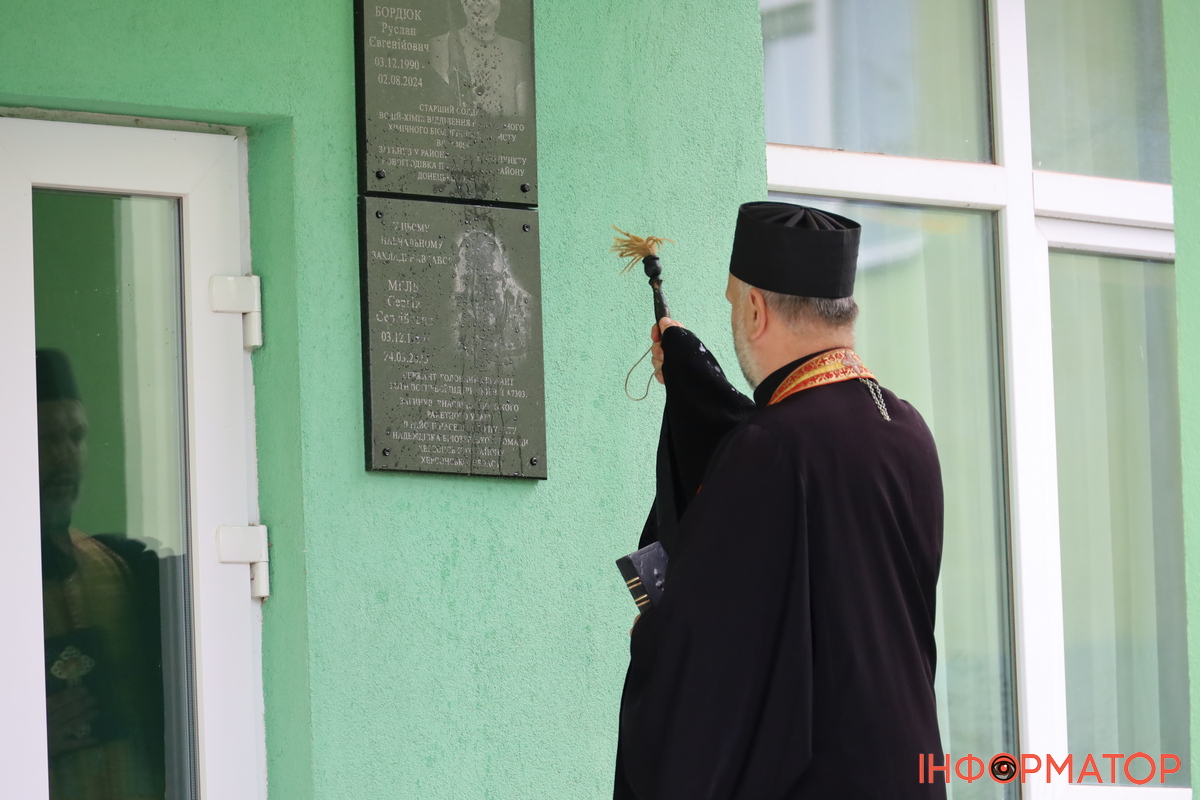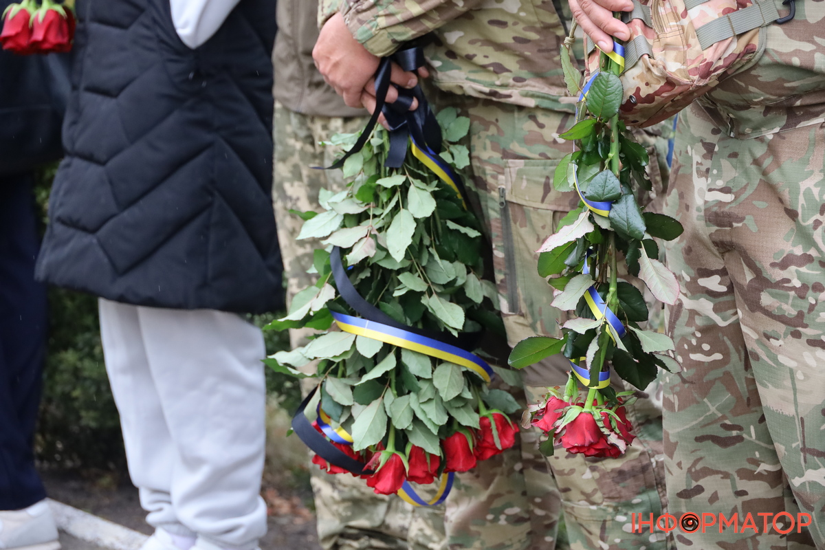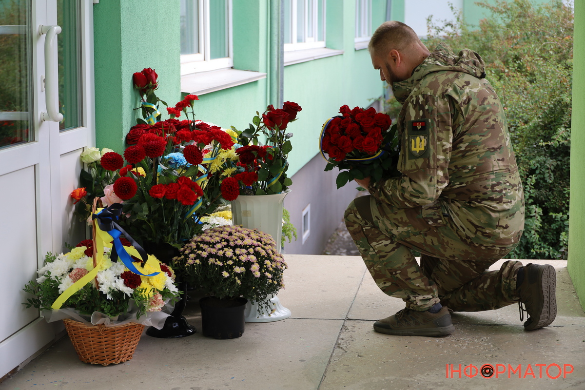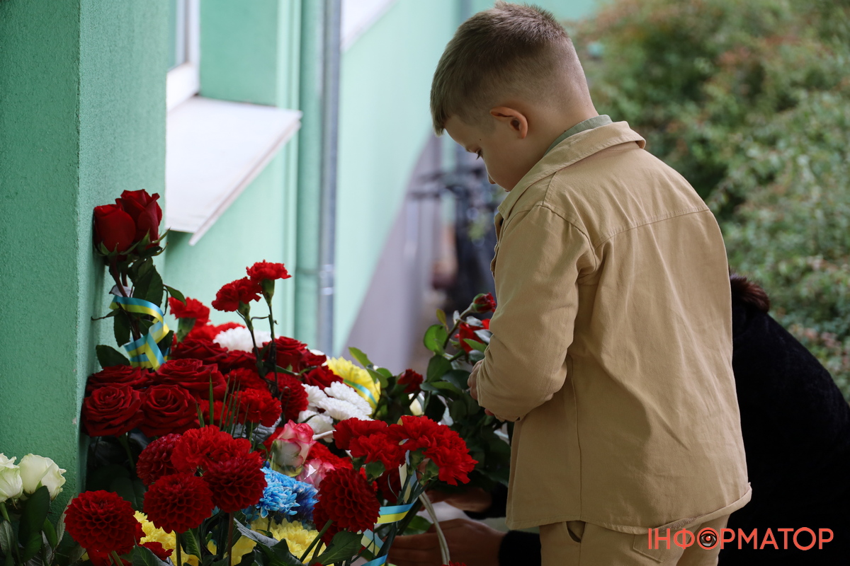 Після цього присутні почали нести квіти до меморіальної дошки, низько вклонялися перед викарбуваним фото, віддаючи шану. Це вже шоста дошка пам’яті захисників, загиблих у російсько-українській війні, на фасаді ліцею Мономаха.