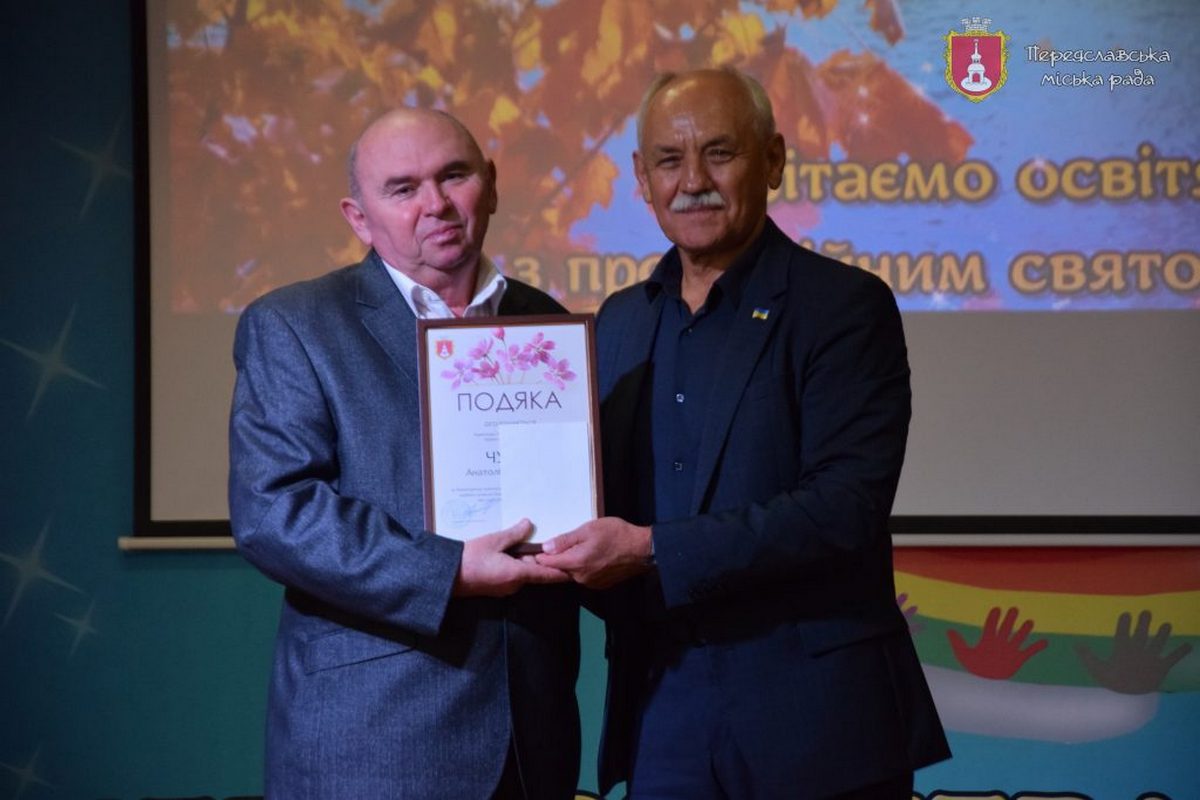Подяками Переяславської міської ради та грошовою винагородою за вагомий внесок у реалізацію завдань сучасної державної політики в галузі освіти, високий професіоналізм, активну громадську позицію з нагоди Дня працівників освіти нагородили: